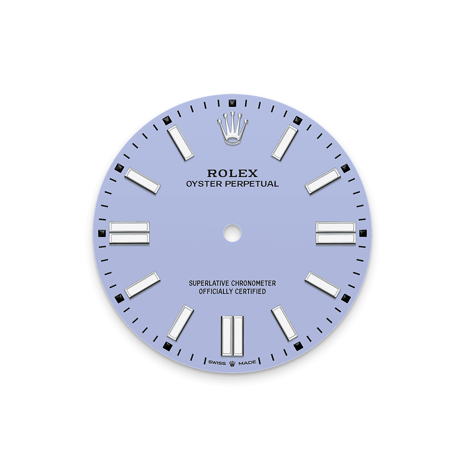 オイスター パーペチュアル コレクションのために作られたこの色は、ラッカーを使用している。ラッカーは埃やその他の異物を避けるために空調管理された環境において慎重に塗布される。