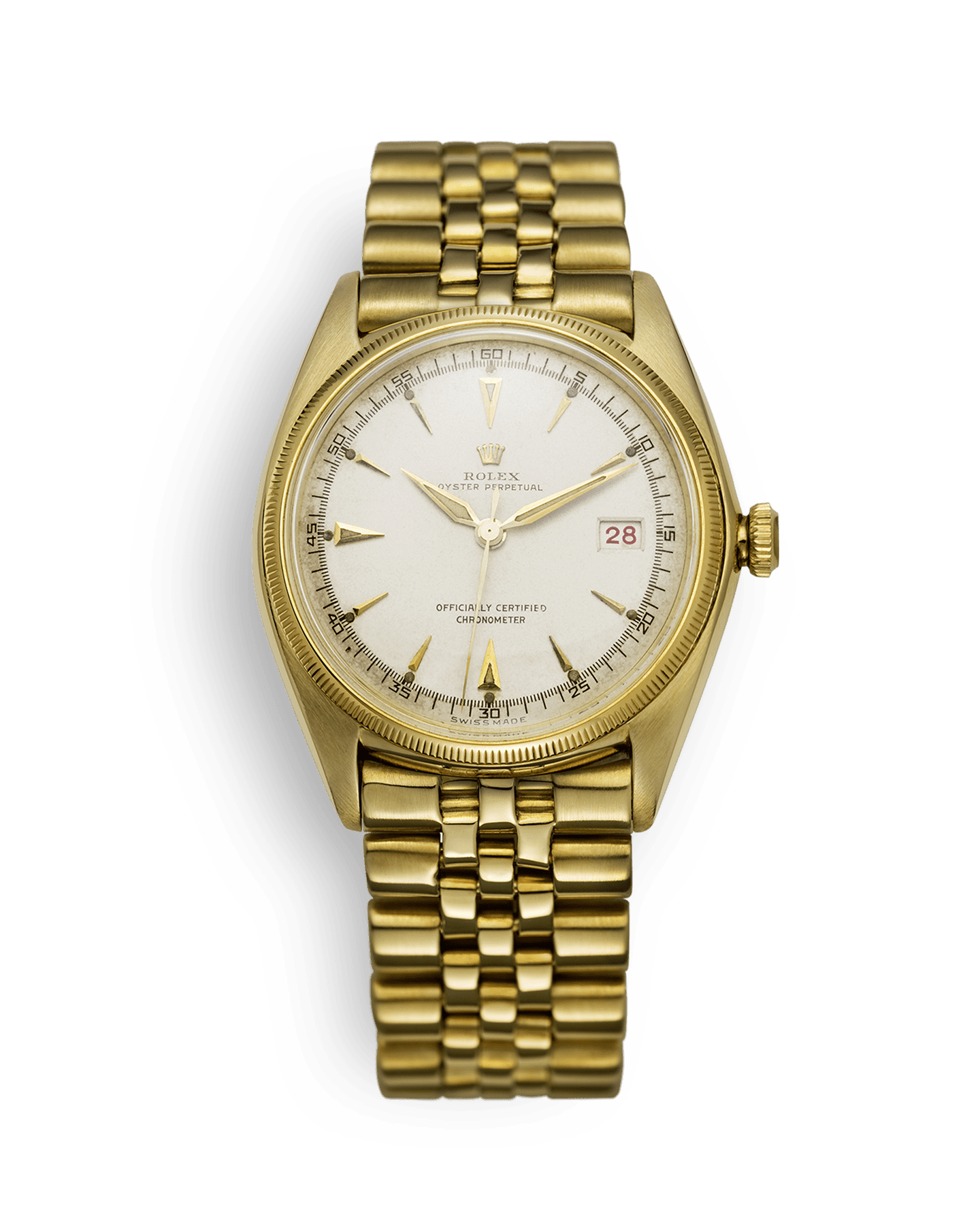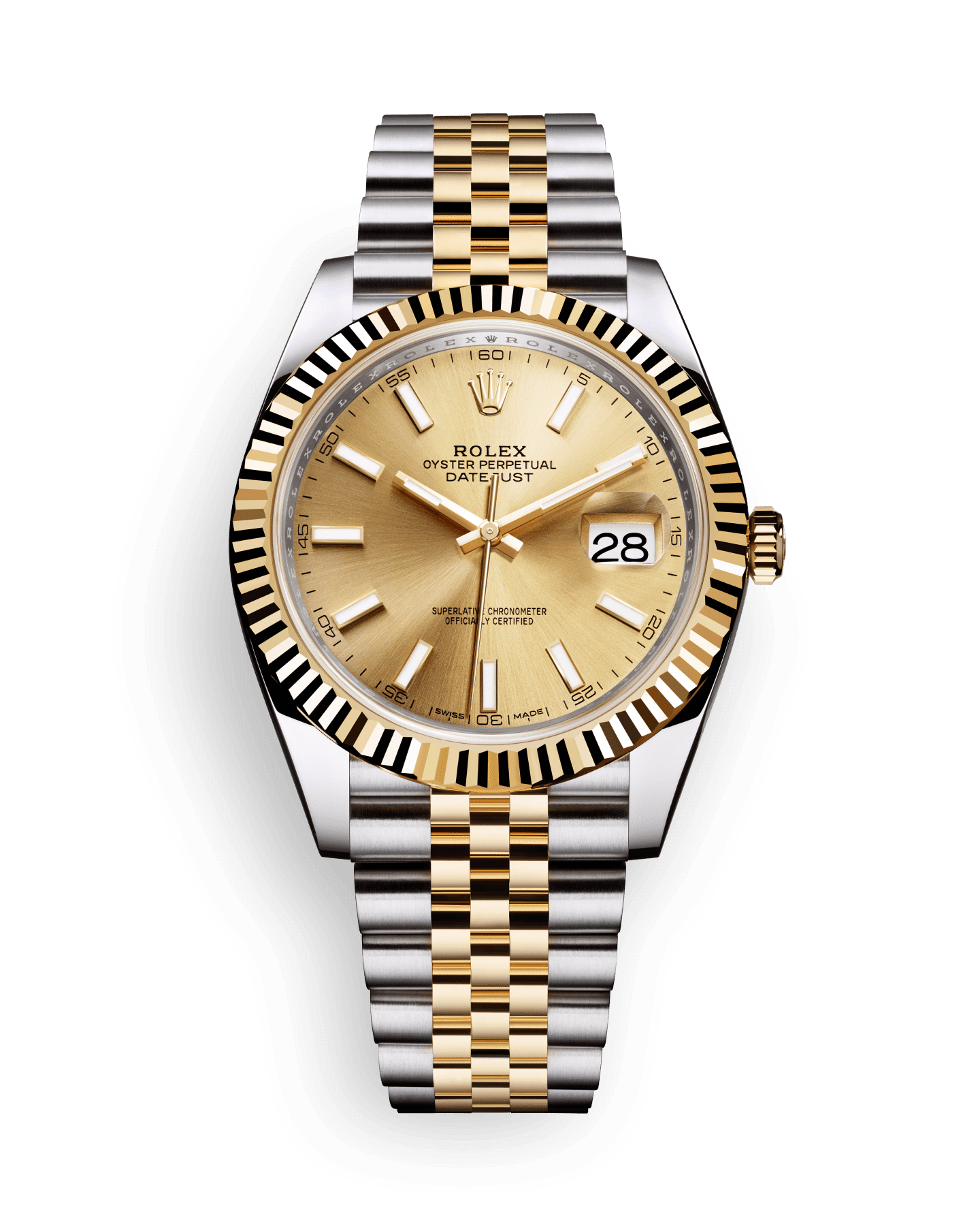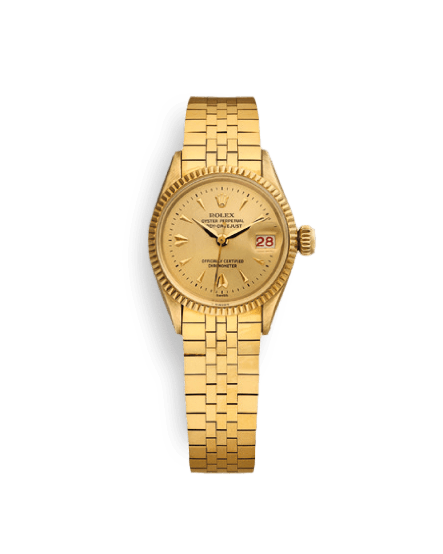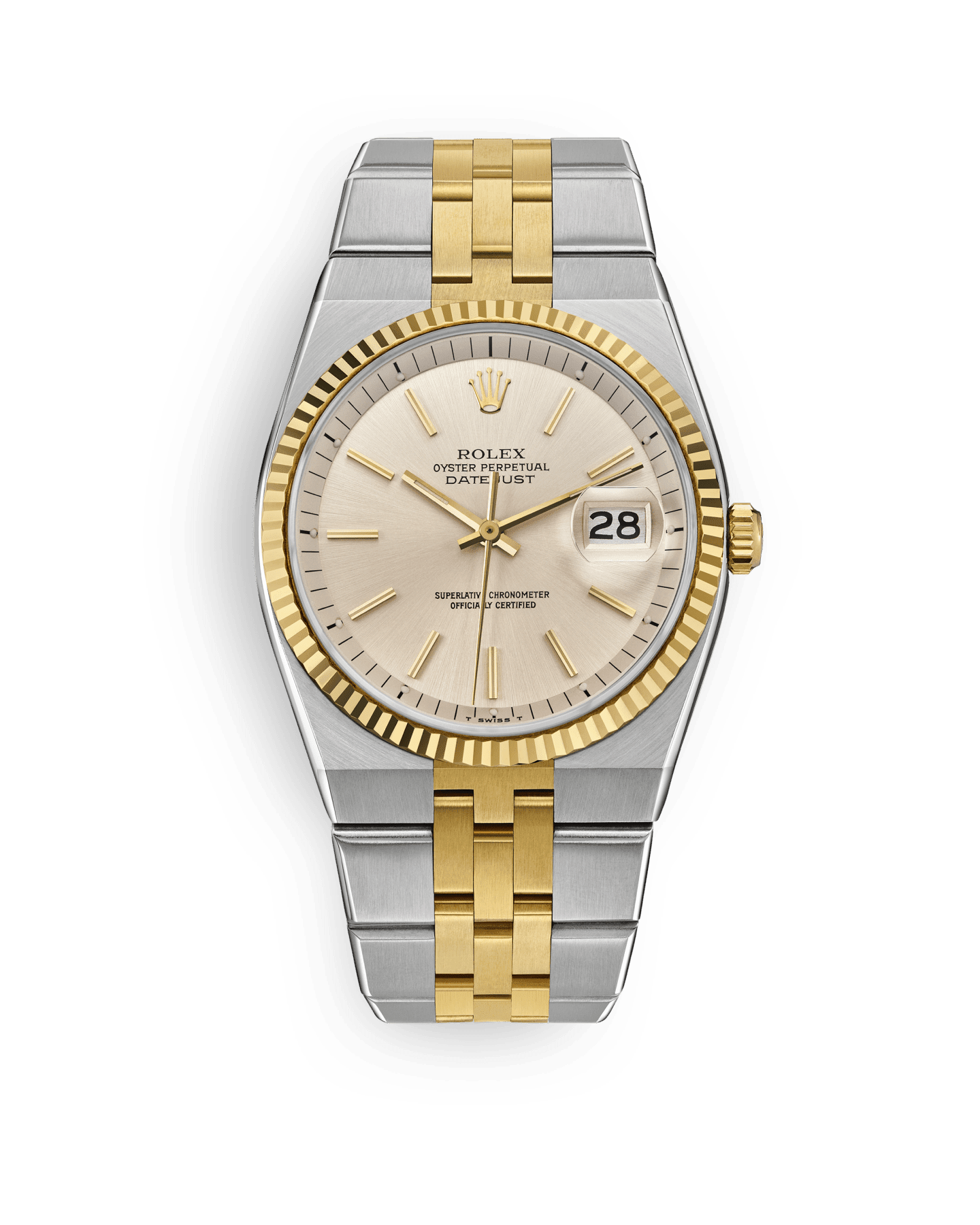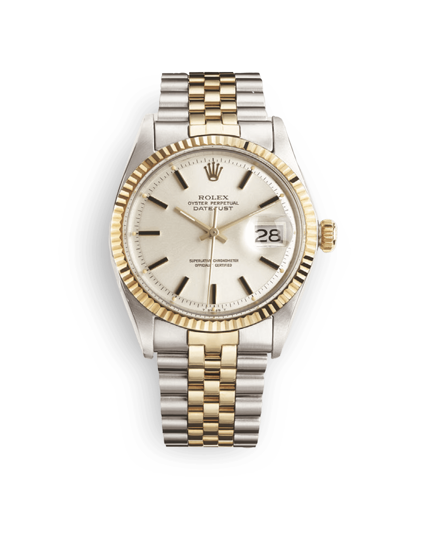 롤렉스는 창립 40주년을 기념하는 의미로 3시 방향의 표시창에서 날짜를 확인할 수 있는 셀프 와인딩 크로노미터 손목시계, 데이트저스트를 출시했습니다. 초기에는 오직 골드 소재로만 출시되었던 데이트저스트는 의미 깊은 해를 맞이해 특별히 제작된 쥬빌리 브레슬릿이 탑재되어 품격 있는 시계로 확고하게 자리를 잡았습니다.