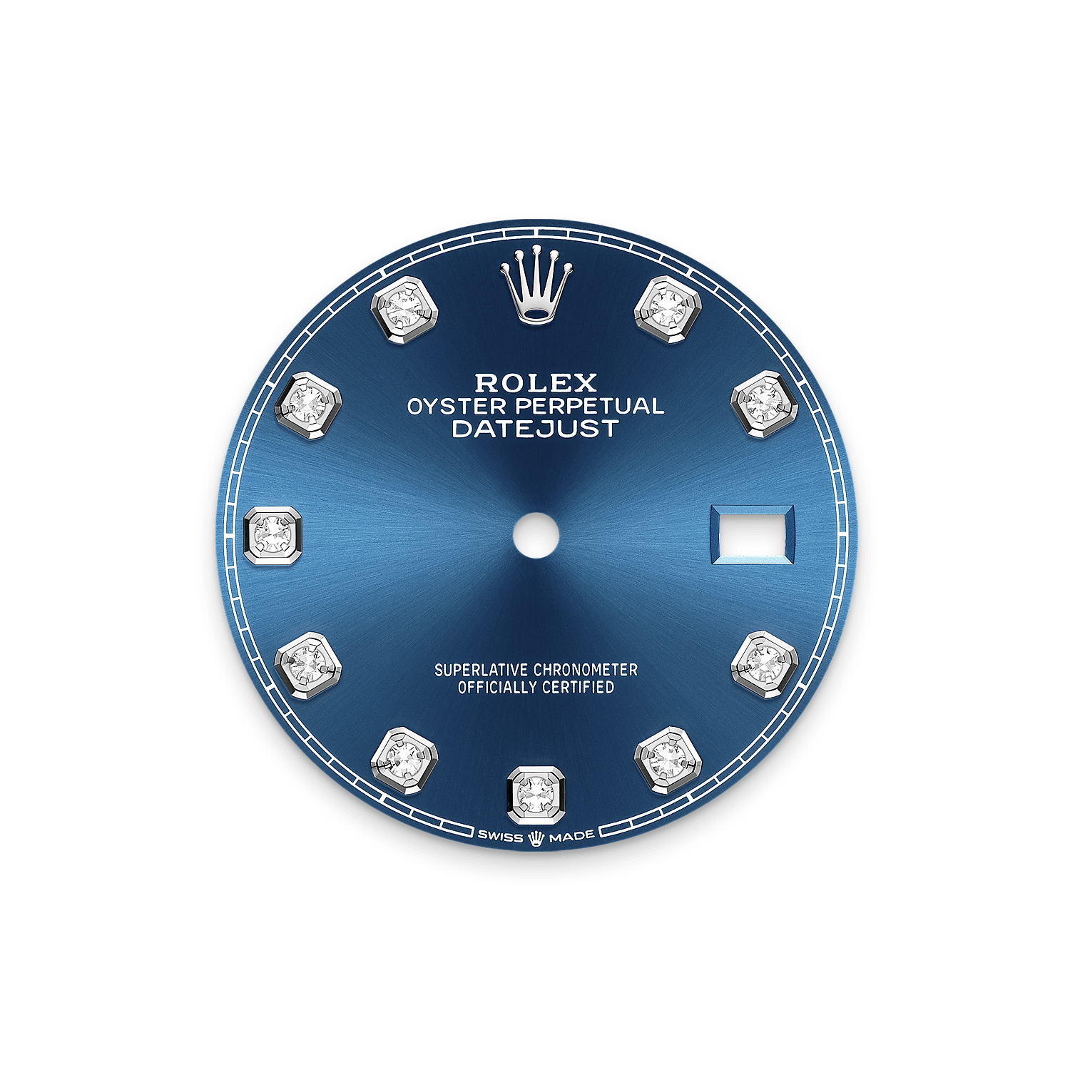 이 다이얼의 특징은 18캐럿 골드 소재의 다이아몬드 세팅입니다. 선레이 피니시 기법은 오이스터 퍼페츄얼 컬렉션의 다양한 다이얼에 섬세한 빛을 선사합니다. 다이얼 중심부에서 바깥쪽으로 뻗어나가는 결은 정교한 브러싱 기술로 완성되었습니다.