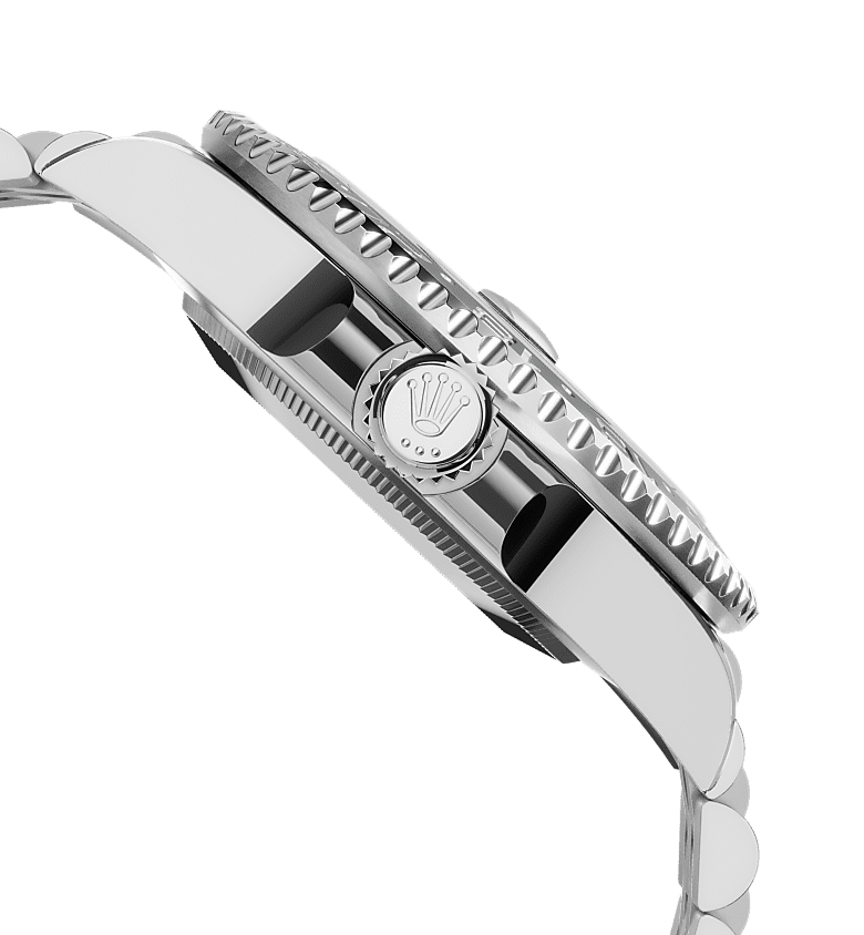 이 모델에 사용된 쥬빌리 브레슬릿에는 롤렉스가 자체 개발하고 특허를 획득한 오이스터록(Oysterlock) 폴딩 세이프티 클라스프가 장착되어 있어 잠금장치가 예기치 않게 열리는 것을 방지해줍니다. 또한, 롤렉스가 개발한 이지링크(Easylink) 기능 덕분에 브레슬릿 길이를 약 5mm 단위로 늘이거나 줄일 수 있습니다. 숨겨진 연결 장치는 마치 브레슬릿과 케이스 사이가 하나로 연결된 것 같은 라인을 선사합니다.