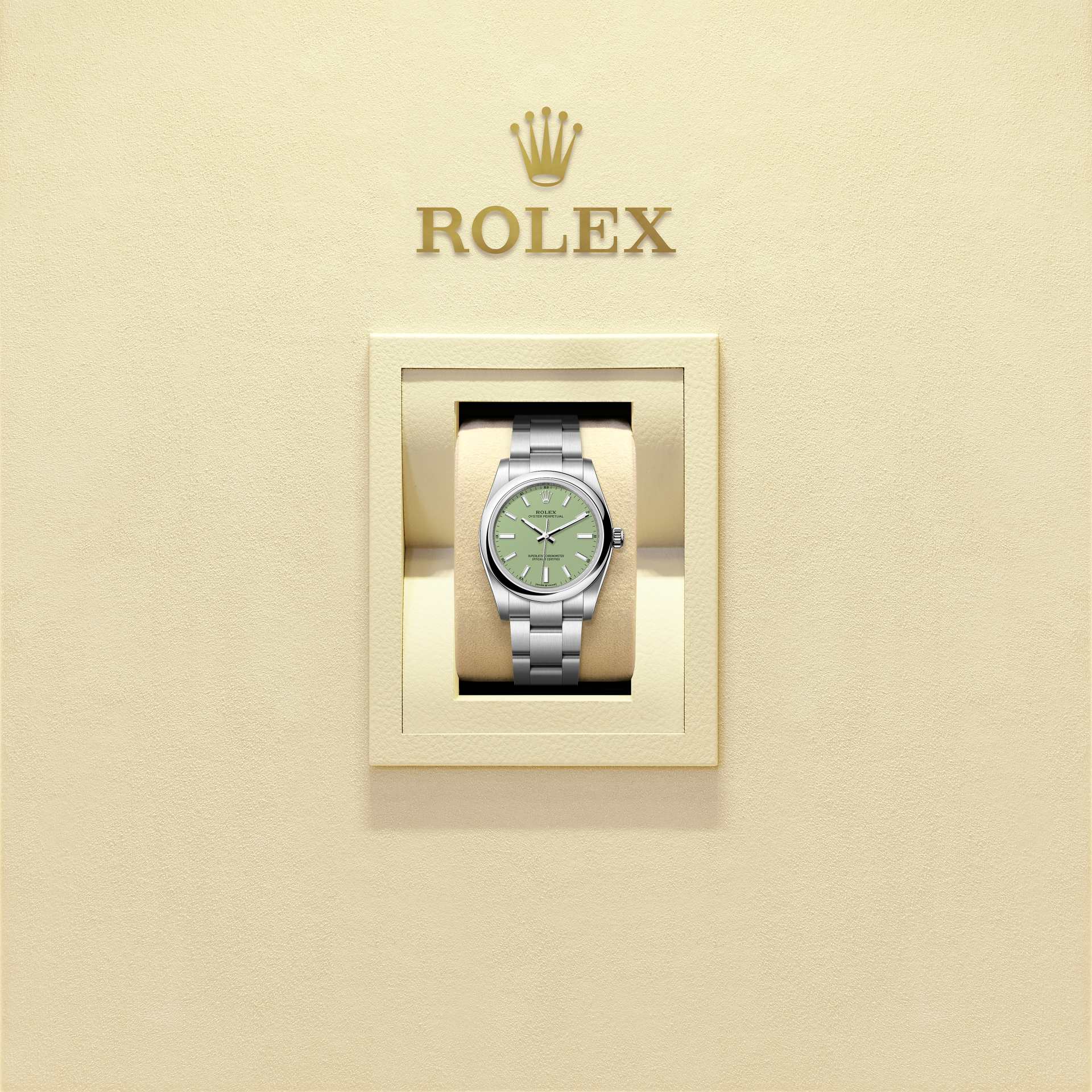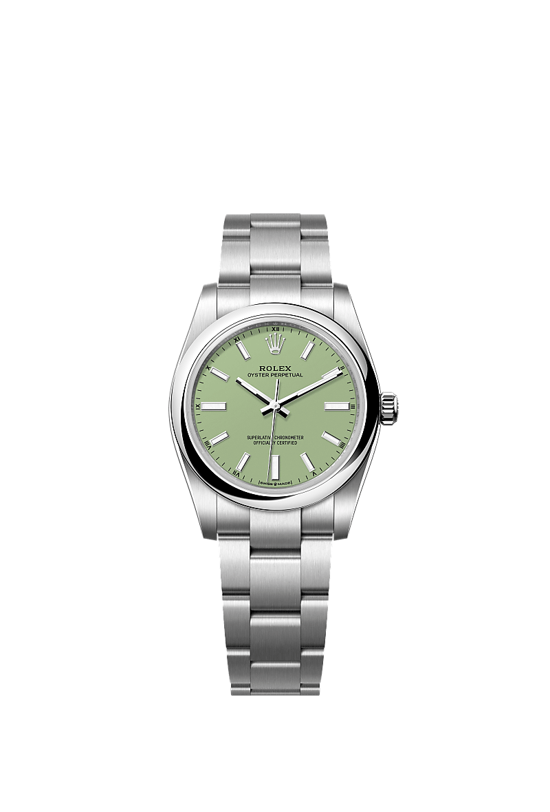 피스타치오 다이얼과 오이스터 브레슬릿을 갖춘 오이스터 퍼페츄얼 34.