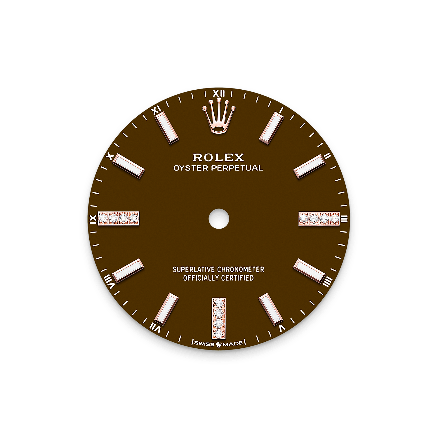 3시, 6시, 9시 방향에 18캐럿 골드 아워 마커, 12개의 다이아몬드 세팅 다이얼이 특징인 모델입니다. 오이스터 퍼페츄얼 라인을 위해 탄생한 이 컬러들은 먼지를 비롯한 여러 오염 물질로부터 철저히 보호된 작업장에서 세심하게 진행되는 래커 처리로부터 시작됩니다.