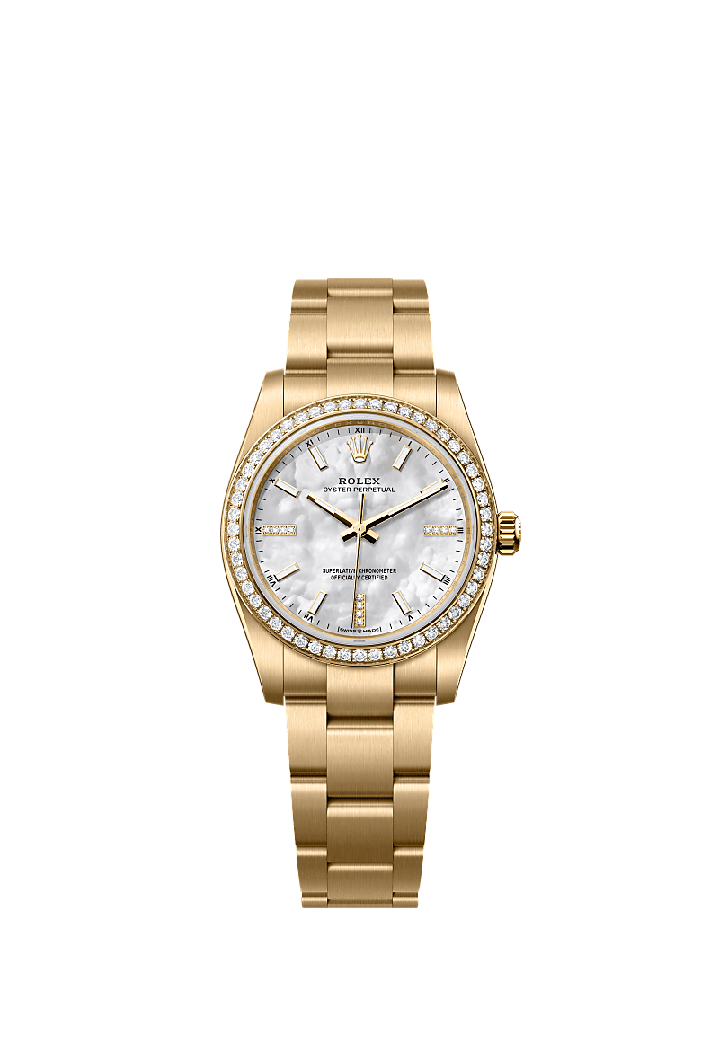 오이스터 퍼페츄얼 34오이스터, 34mm, 옐로우 골드와 다이아몬드레퍼런스 124248RBR