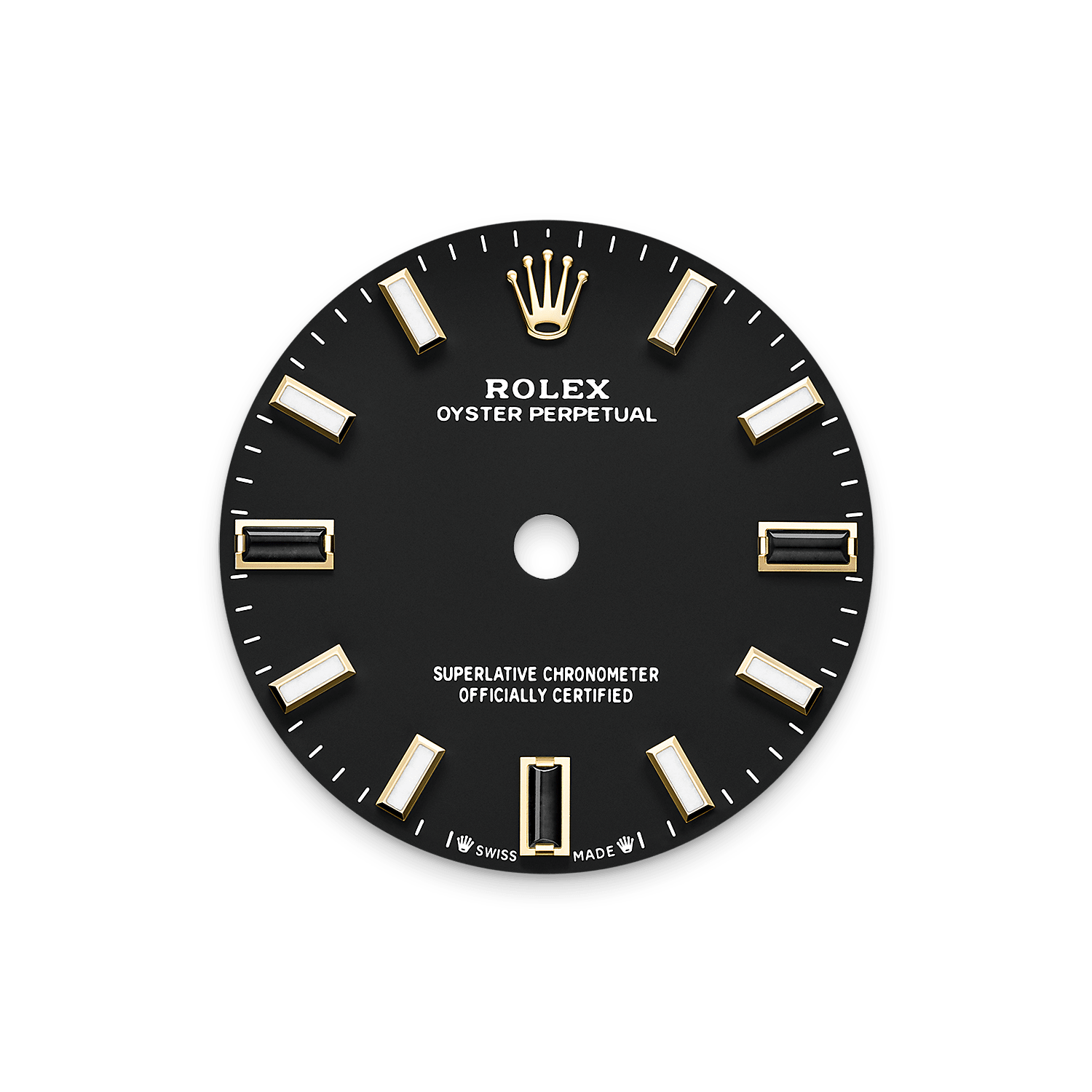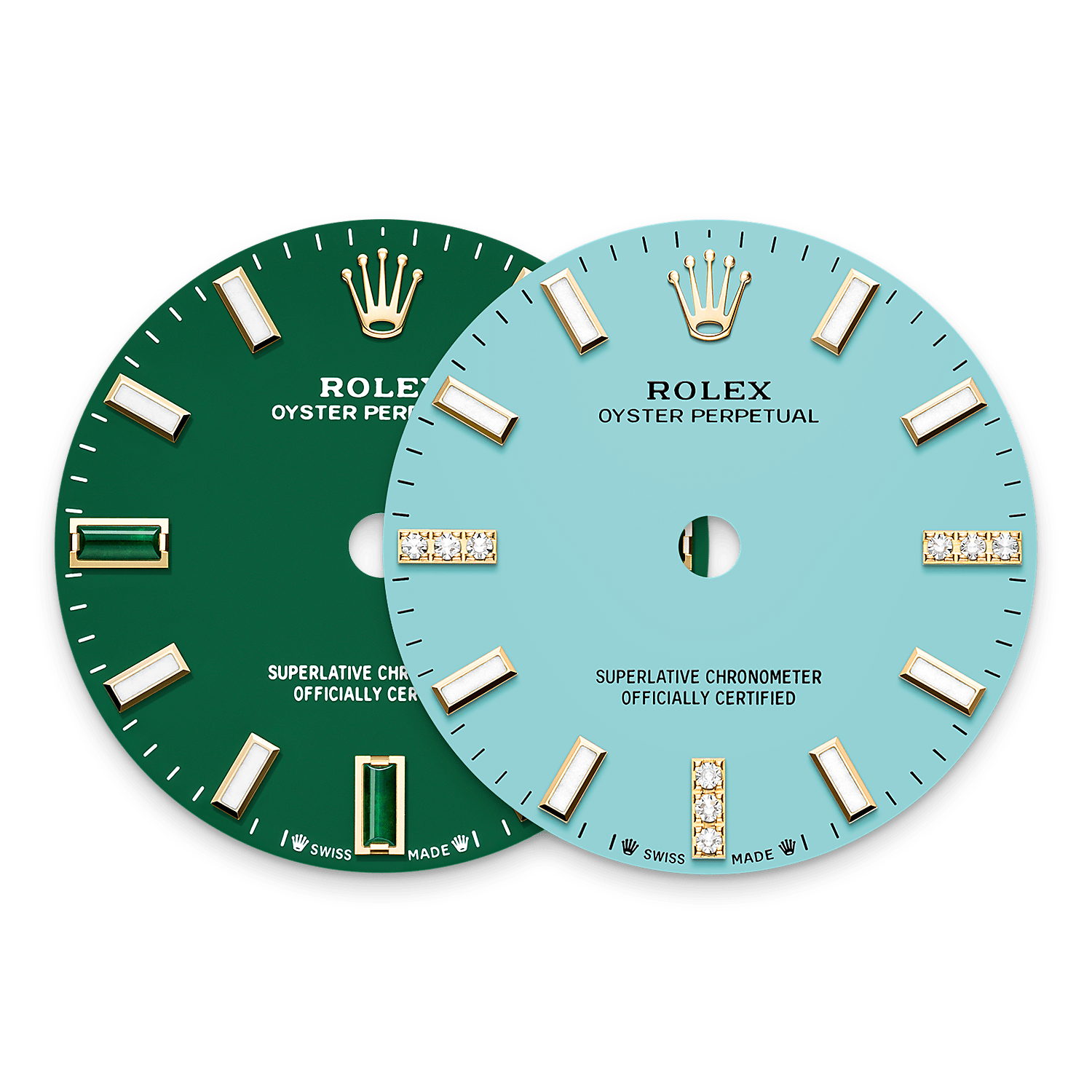 이 다이얼은 3시, 6시, 9시 방향에 자연석 소재로 제작된 아워 마커를 갖추고 있습니다. 오이스터 퍼페츄얼 라인을 위해 탄생한 이 컬러들은 먼지를 비롯한 여러 오염 물질로부터 철저히 보호된 작업장에서 세심하게 진행되는 래커 처리로부터 시작됩니다.