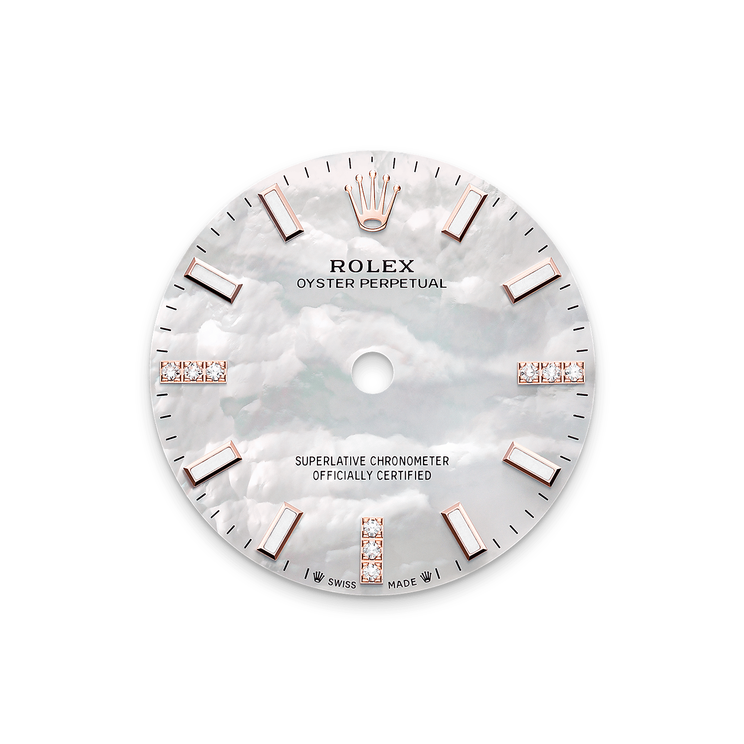 롤렉스는 진주자개에 어떤 인공적인 컬러도 추가하지 않습니다. 특별한 노하우와 기술로 오직 본연의 아름다움을 극대화하고 색조를 유지하는 데만 집중합니다. 롤렉스의 모든 진주자개 다이얼은 그 어떤 다이얼과도 같지 않은 세상에 하나뿐인 독특한 작품입니다.