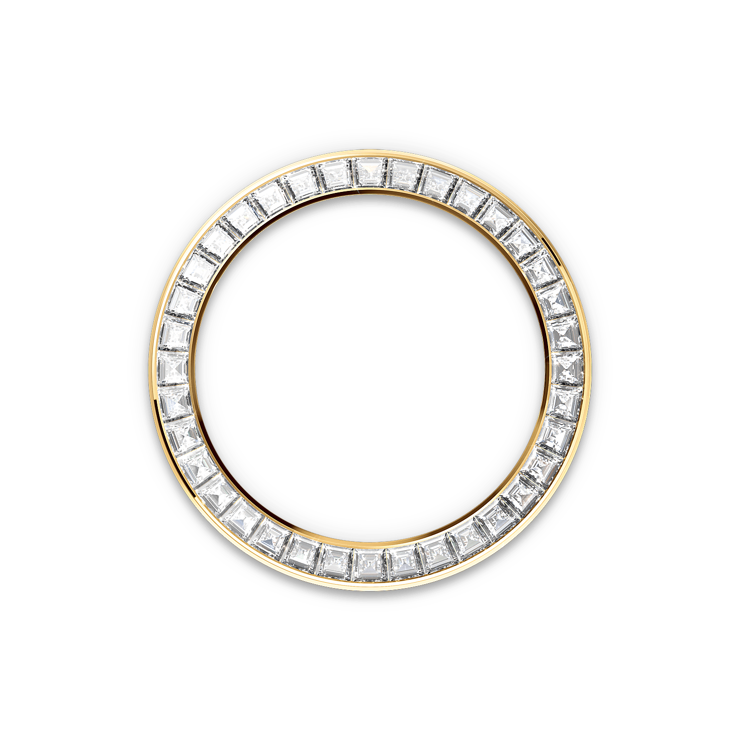 Jam tangan ini menggabungkan bezel yang dihiasi dengan 36 berlian potongan trapez.