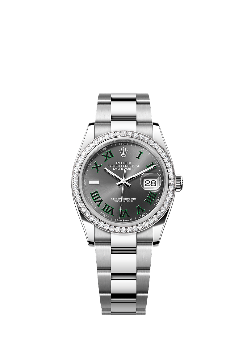 Datejust 36Oyster, 36 mm, Oystersteel, emas putih dan berlianRujukan 126284RBR