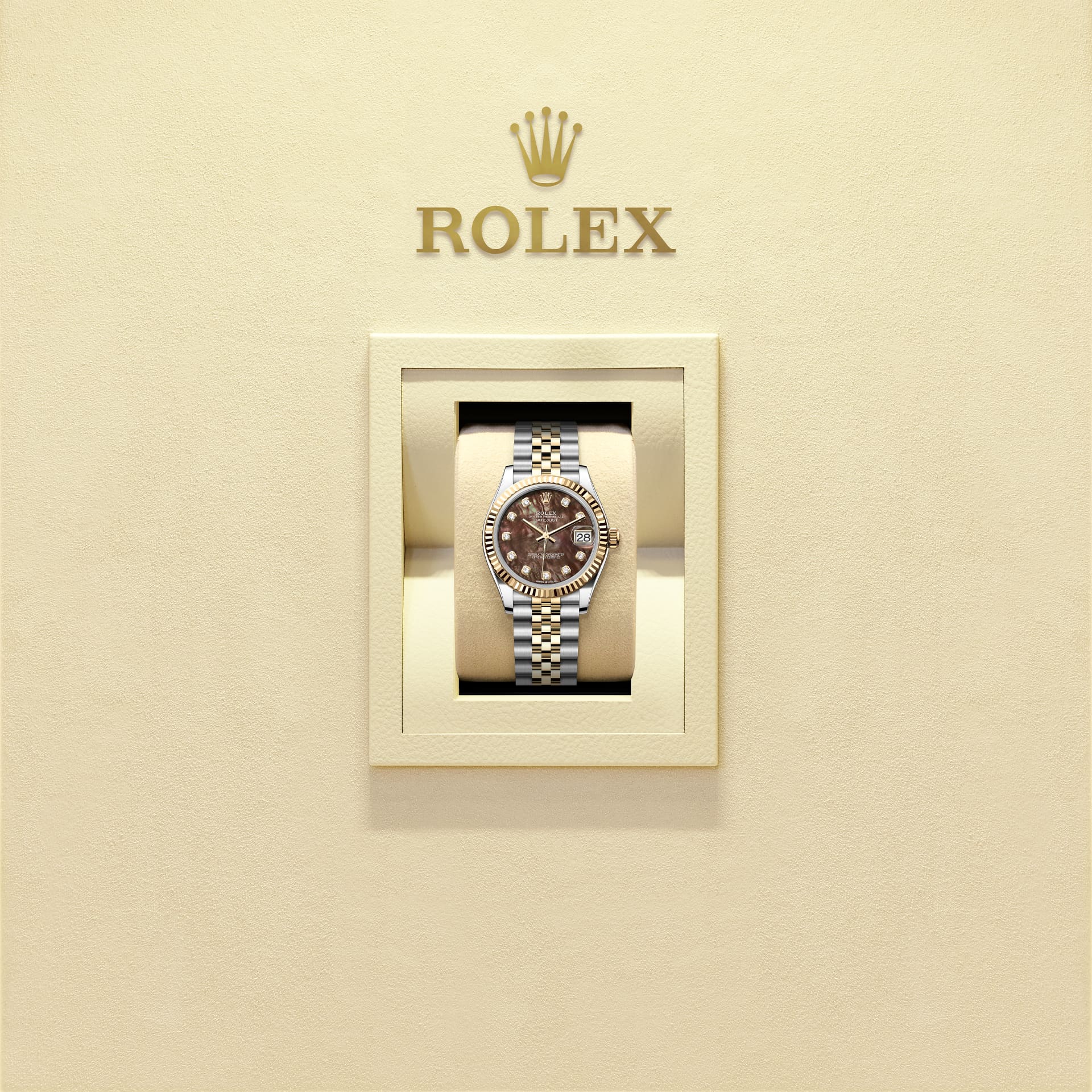 Di Rolex, ibu mutiara tidak mempunyai warna tiruan. Sebaliknya, pengetahuan dan kemahiran yang tertentu akan digembleng untuk menonjolkan keindahan semula jadi dan memelihara warna asalnya. Oleh sebab semua permukaan ibu mutiara adalah unik, permukaan yang serupa tidak akan ditemui pada pergelangan tangan orang lain.