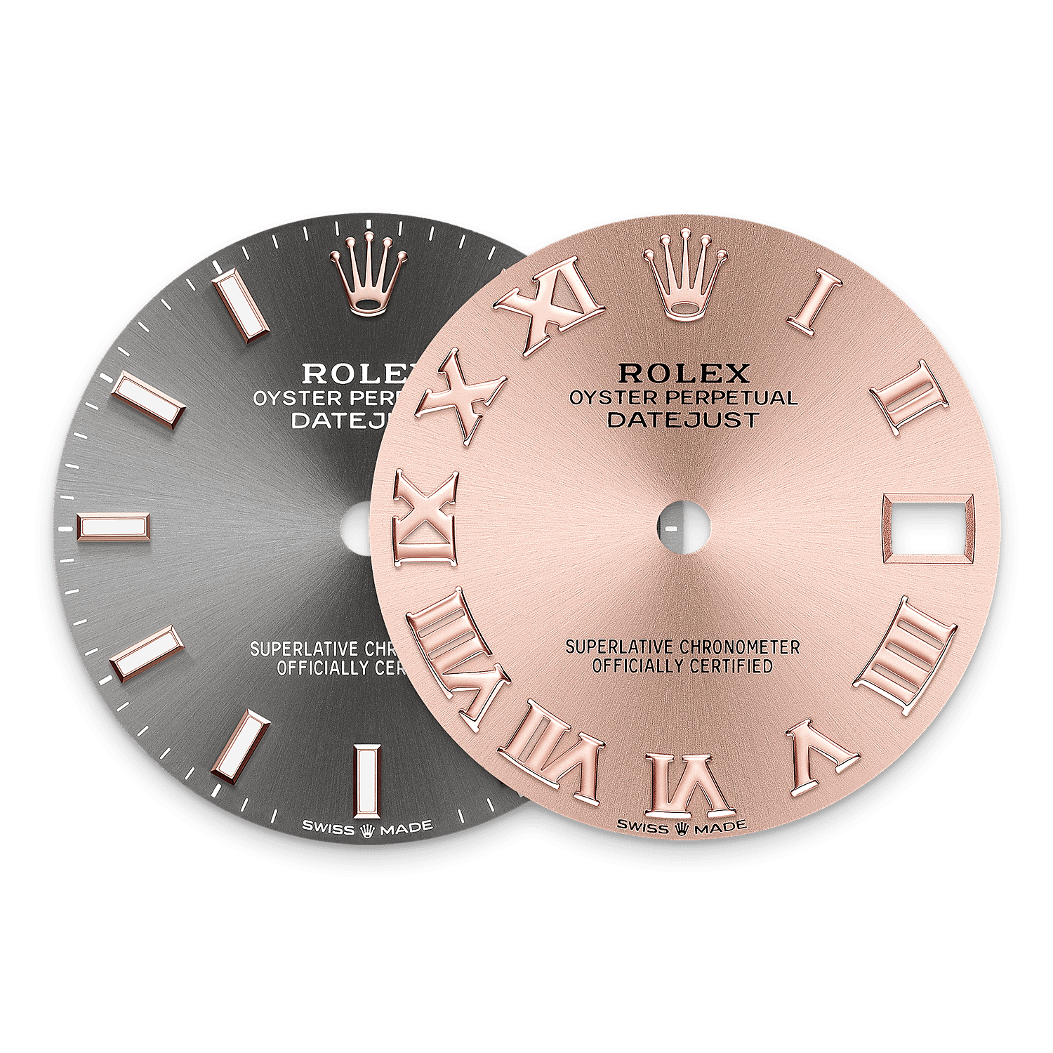 Permukaan ini mempunyai berlian dalam tetapan emas 18 karat. Kemasan sinaran cahaya matahari menghasilkan pantulan cahaya yang halus pada kebanyakan permukaan dalam koleksi Oyster Perpetual. Kemasan ini digarap menerusi kemahiran teknik memberus yang menghasilkan alur yang memencar keluar dari tengah permukaan.