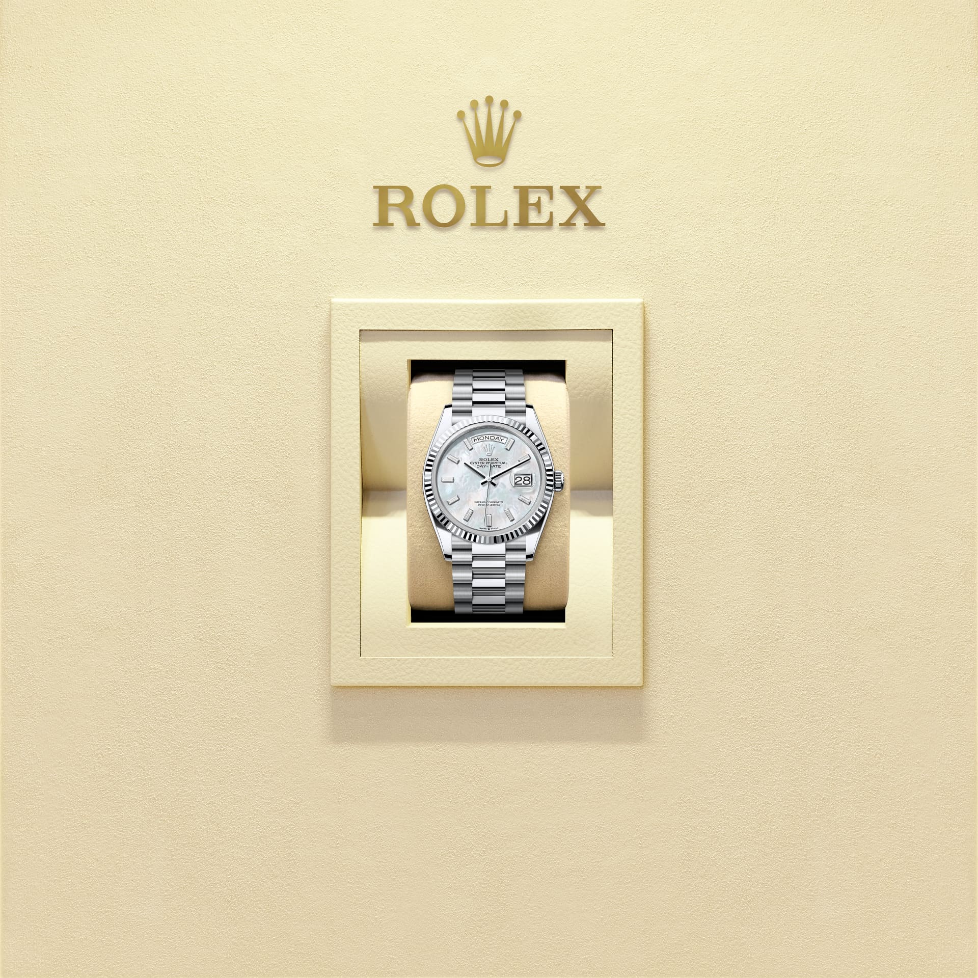 Di Rolex, ibu mutiara tidak mempunyai warna tiruan. Sebaliknya, pengetahuan dan kemahiran yang tertentu akan digembleng untuk menonjolkan keindahan semula jadi dan memelihara warna asalnya. Oleh sebab semua permukaan ibu mutiara adalah unik, permukaan yang serupa tidak akan ditemui pada pergelangan tangan orang lain.
