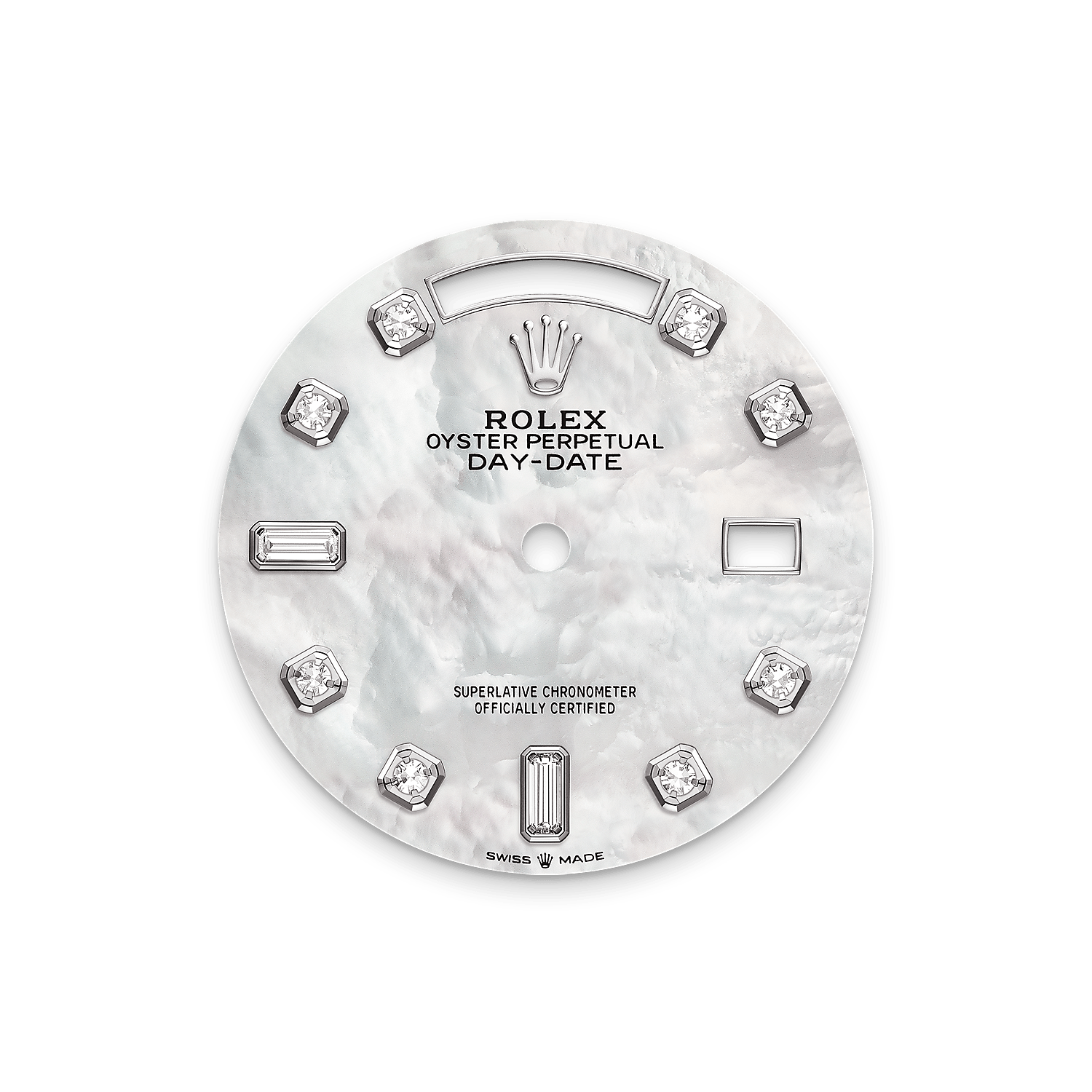 Di Rolex, ibu mutiara tidak mempunyai warna tiruan. Sebaliknya, pengetahuan dan kemahiran yang tertentu akan digembleng untuk menonjolkan keindahan semula jadi dan memelihara warna asalnya. Oleh sebab semua permukaan ibu mutiara adalah unik, permukaan yang serupa tidak akan ditemui pada pergelangan tangan orang lain.