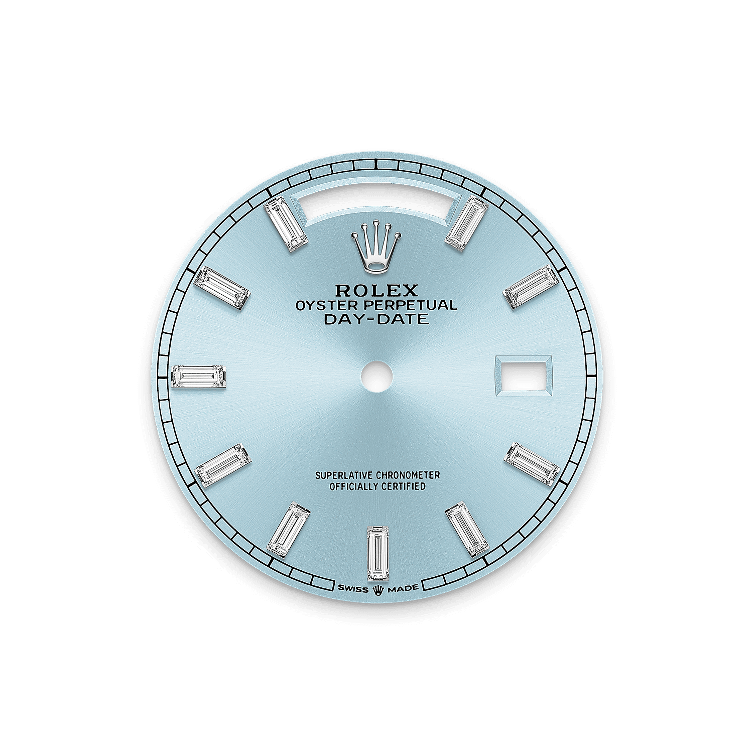 Permukaan biru ais ialah tanda pengenalan yang eksklusif dan tidak menonjol bagi jam tangan platinum Rolex. Rolex menggunakan platinum, logam adi terunggul, untuk jam tangan yang terbaik.