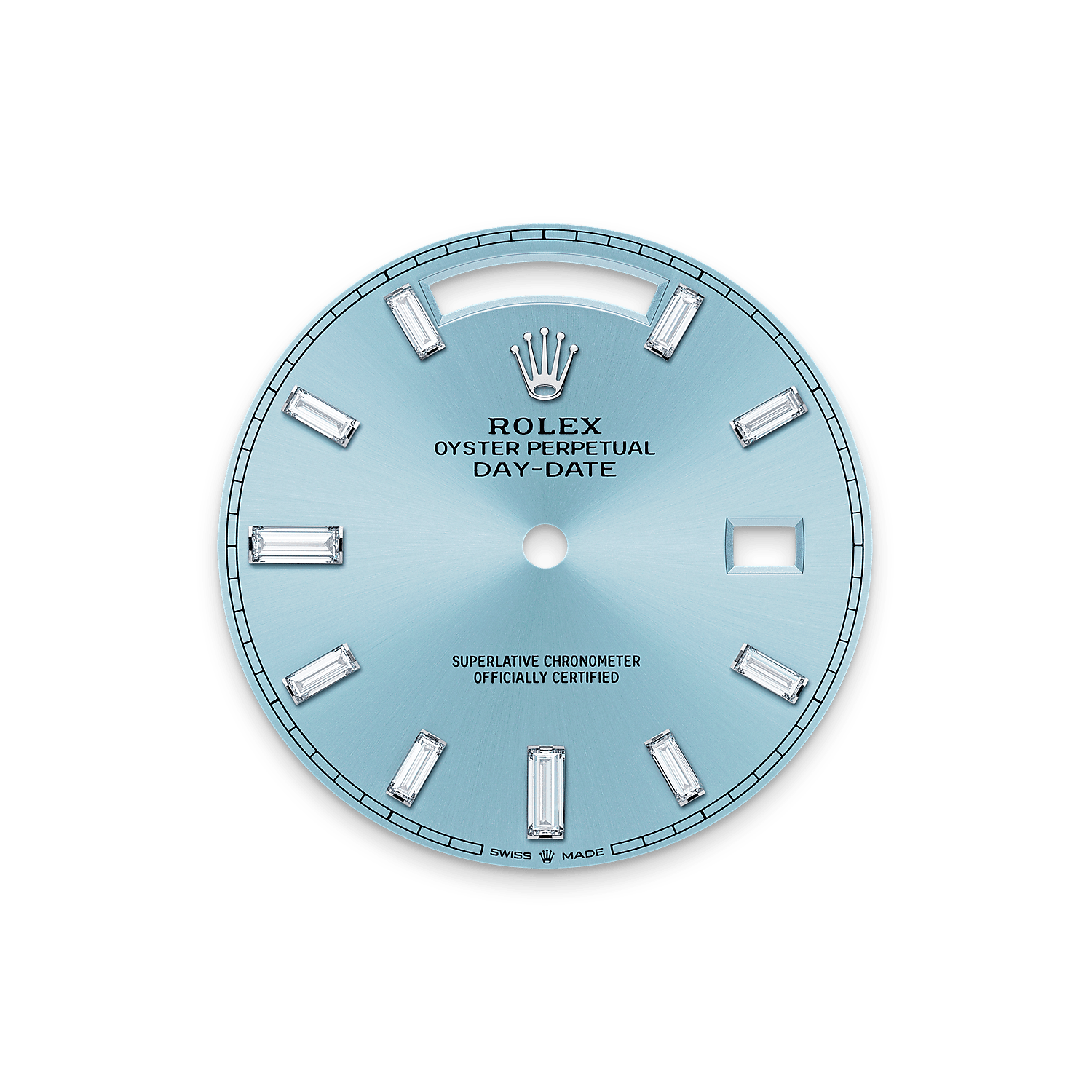 Permukaan biru ais ialah tanda pengenalan yang eksklusif dan tidak menonjol bagi jam tangan platinum Rolex. Rolex menggunakan platinum, logam adi terunggul, untuk jam tangan yang terbaik.