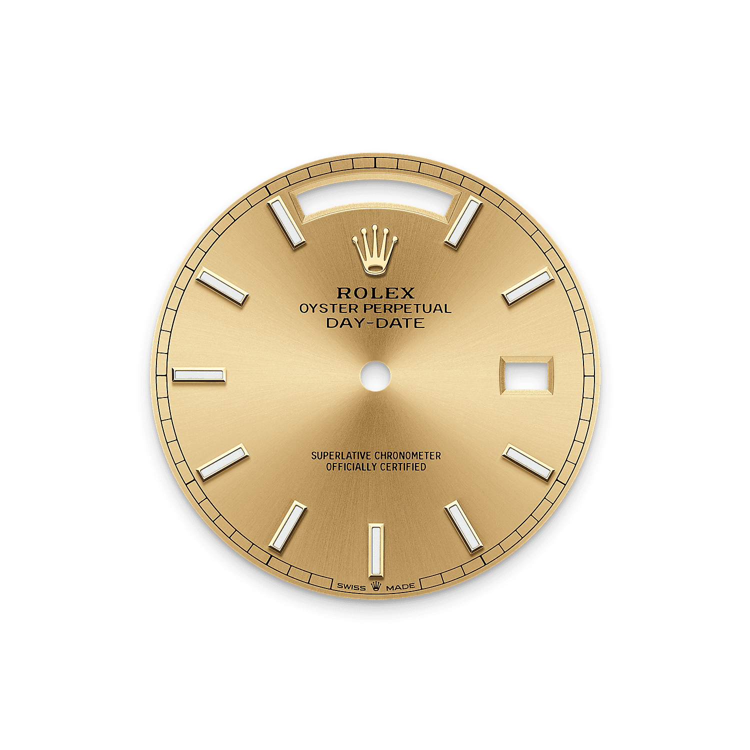 Kemasan sinaran cahaya matahari menghasilkan pantulan cahaya yang halus pada kebanyakan permukaan dalam koleksi Oyster Perpetual. Kemasan ini digarap menerusi kemahiran teknik memberus yang menghasilkan alur yang memencar keluar dari tengah permukaan.
