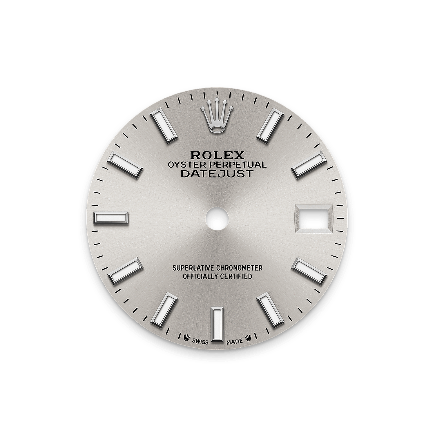 Kemasan sinaran cahaya matahari menghasilkan pantulan cahaya yang halus pada kebanyakan permukaan dalam koleksi Oyster Perpetual. Kemasan ini digarap menerusi kemahiran teknik memberus yang menghasilkan alur yang memencar keluar dari tengah permukaan.