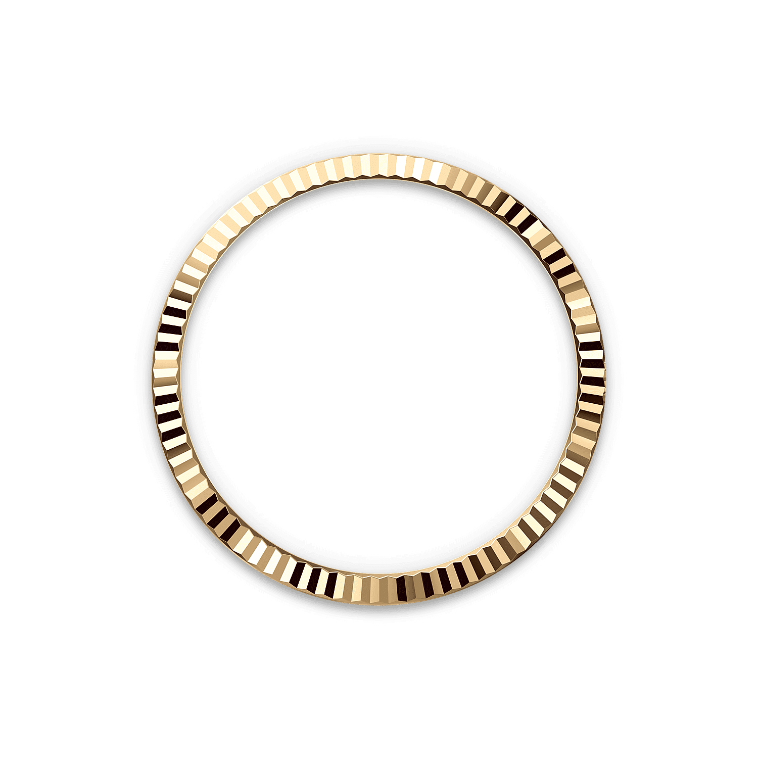 Daarom waren de kartels identiek aan die op de achterkant van het horloge, die eveneens op de kast werd vastgeschroefd voor de waterdichtheid met speciaal Rolex-gereedschap. Na verloop van tijd kregen de kartels echter een meer esthetische functie en werden ze een kenmerk van een echte Rolex. Tegenwoordig is de gekartelde bezel een teken van onderscheid. Op deze Datejust 36 is hij van goud.