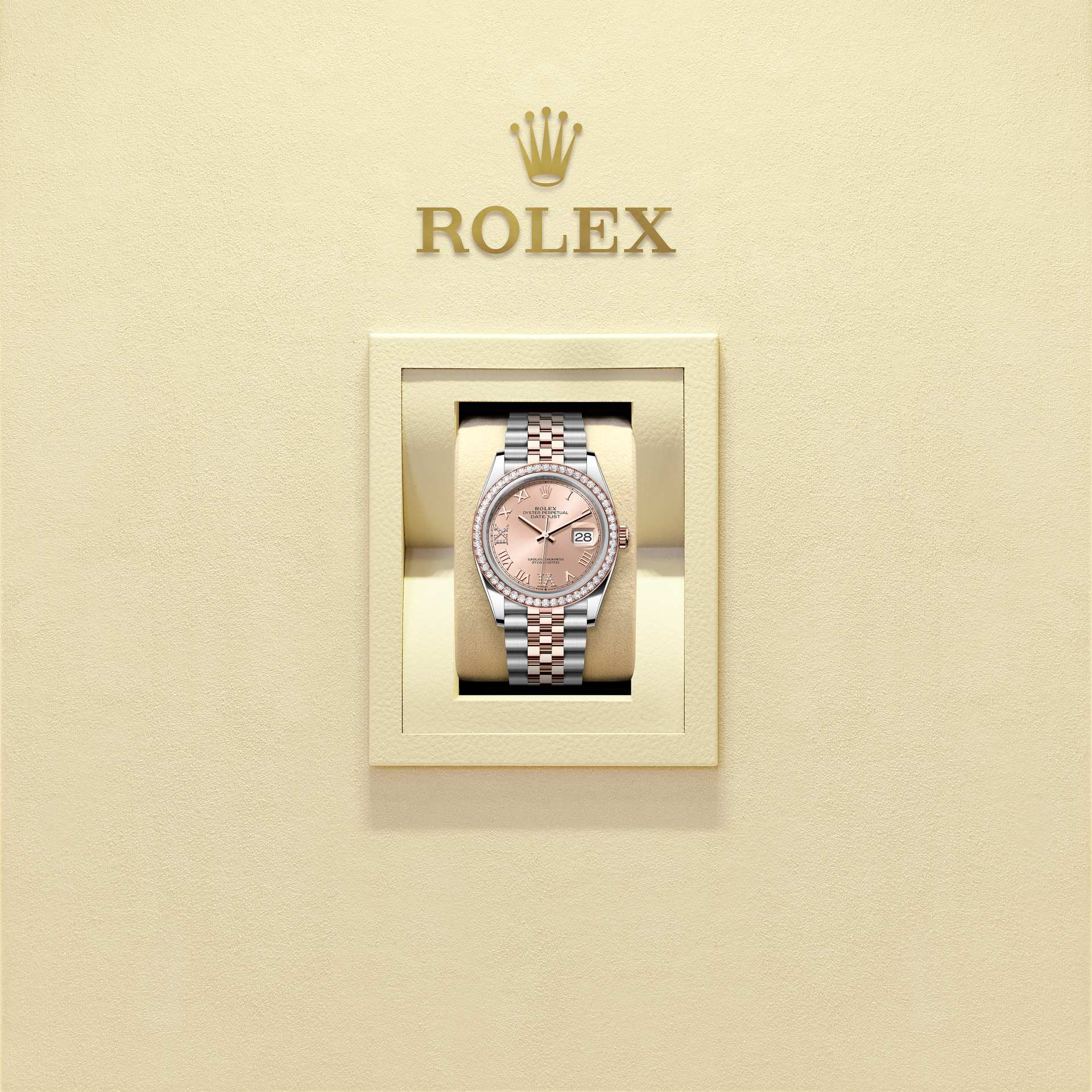 Datejust 36Oyster, 36 mm, Oystersteel, Everose-goud en diamantenReferentie 126281RBR