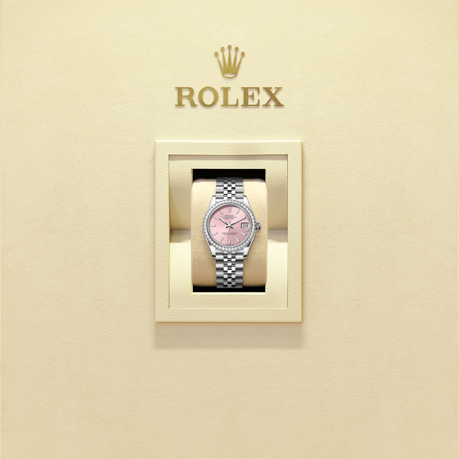 Deze Oyster Perpetual Datejust 31 van Oystersteel en witgoud heeft een roze wijzerplaat en een Jubilee-band.