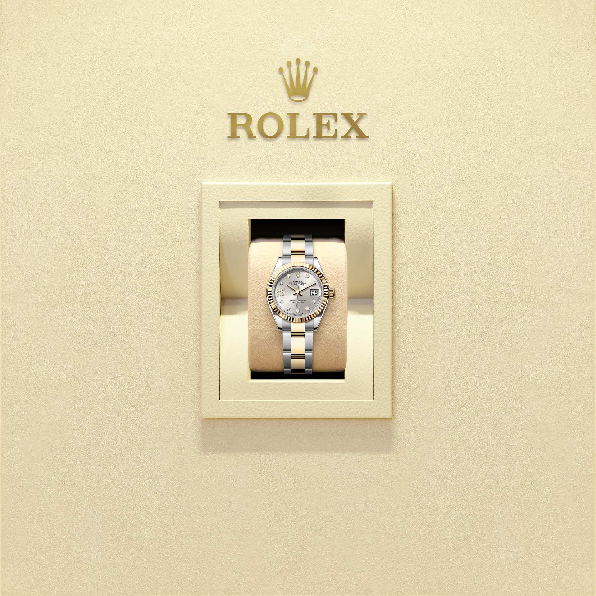 Daarom waren de kartels identiek aan die op de achterkant van het horloge, die eveneens op de kast werd vastgeschroefd voor de waterdichtheid met speciaal Rolex-gereedschap. Na verloop van tijd kregen de kartels echter een meer esthetische functie en werden ze een kenmerk van een echte Rolex. Tegenwoordig is de gekartelde bezel een teken van onderscheid. Op deze Lady-Datejust is hij van goud.