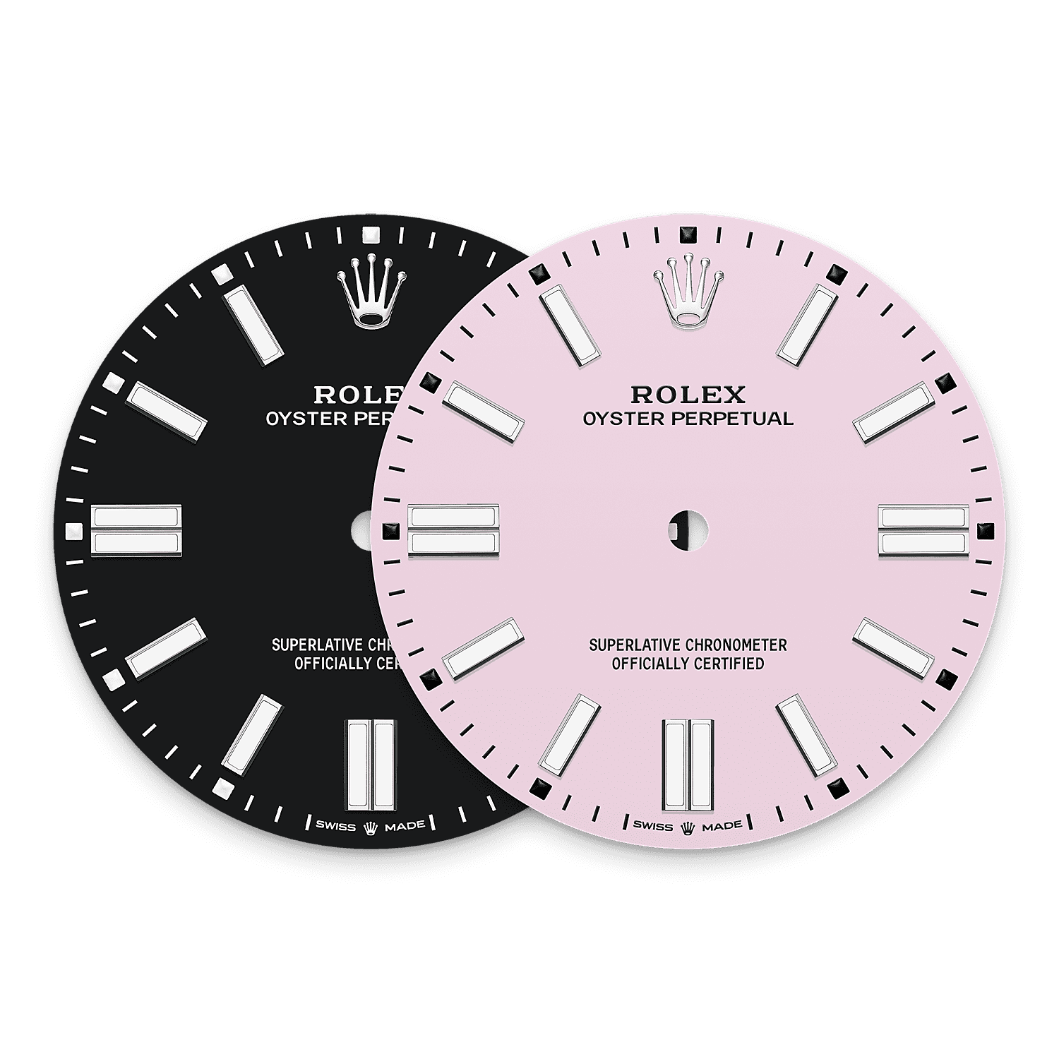 De Oyster Perpetual 41 met een lavender wijzerplaat en een Oyster-band.