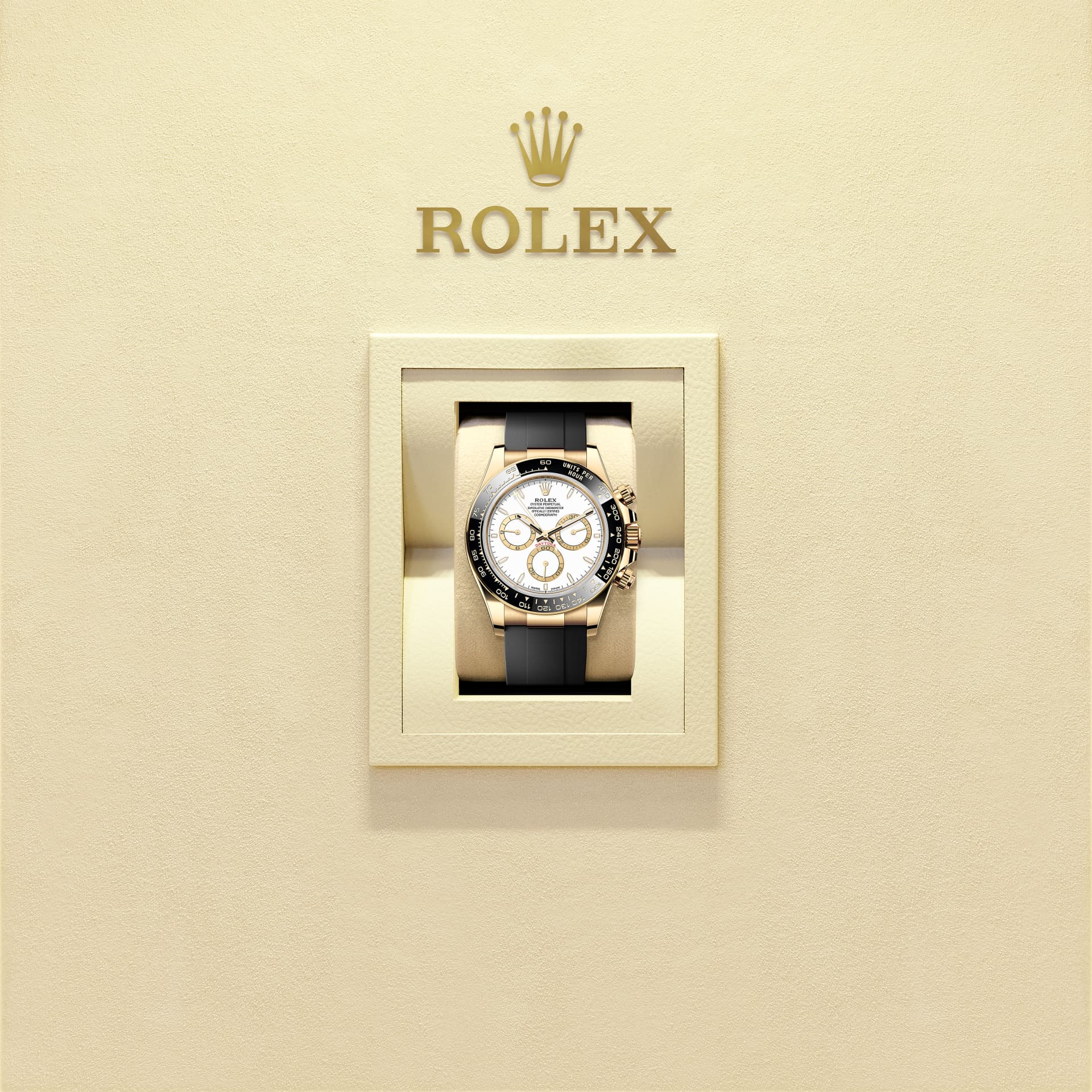 Wykonane z 18-karatowego złota i wyposażone w pierścień Cerachrom wersje zegarka Cosmograph Daytona dostępne są z bransoletą Oysterflex. Opracowana i opatentowana przez markę Rolex innowacyjna bransoleta łączy w sobie solidność bransolety metalowej i wygodę paska z elastomeru.