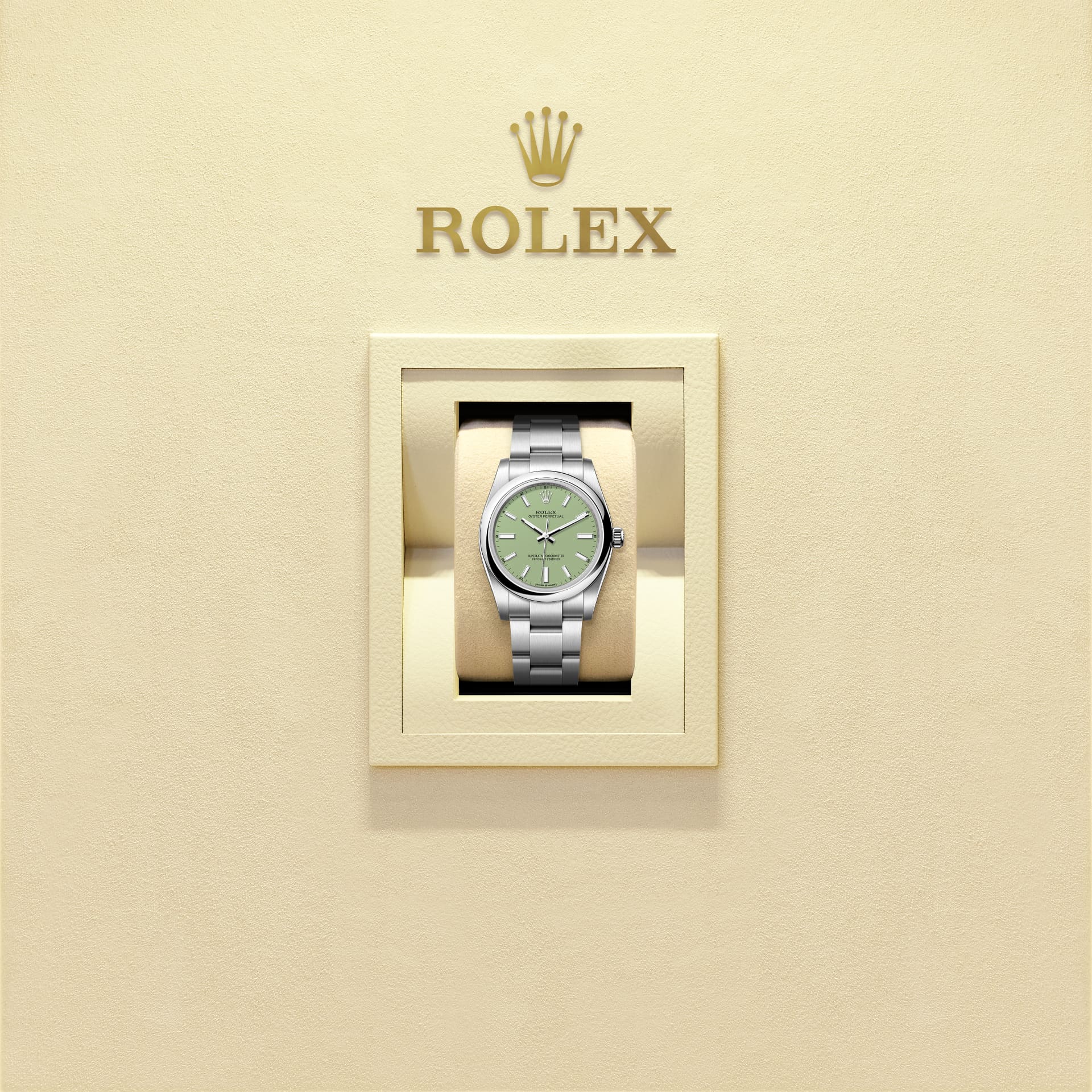 Oyster Perpetual 34: tarcza pistachio oraz bransoleta Oyster.