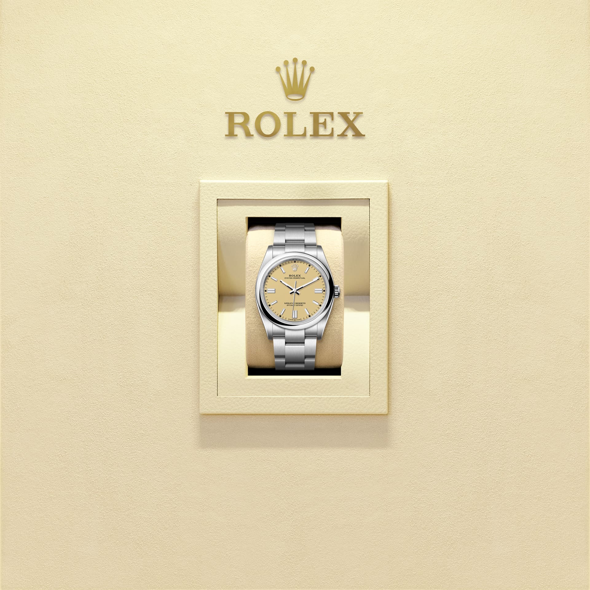 Oyster Perpetual 36: tarcza beżowa oraz bransoleta Oyster.