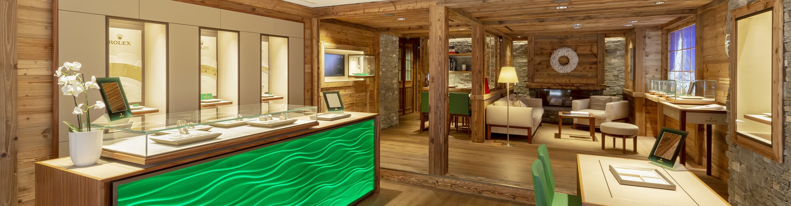 Inteiramente mobiliada e decorada com um design de interior elegante criado pela marca em Genebra, a nossa boutique exclusiva presta tributo à sólida parceria entre a Rolex e a ROLEX BOUTIQUE BUCHERER ZERMATT