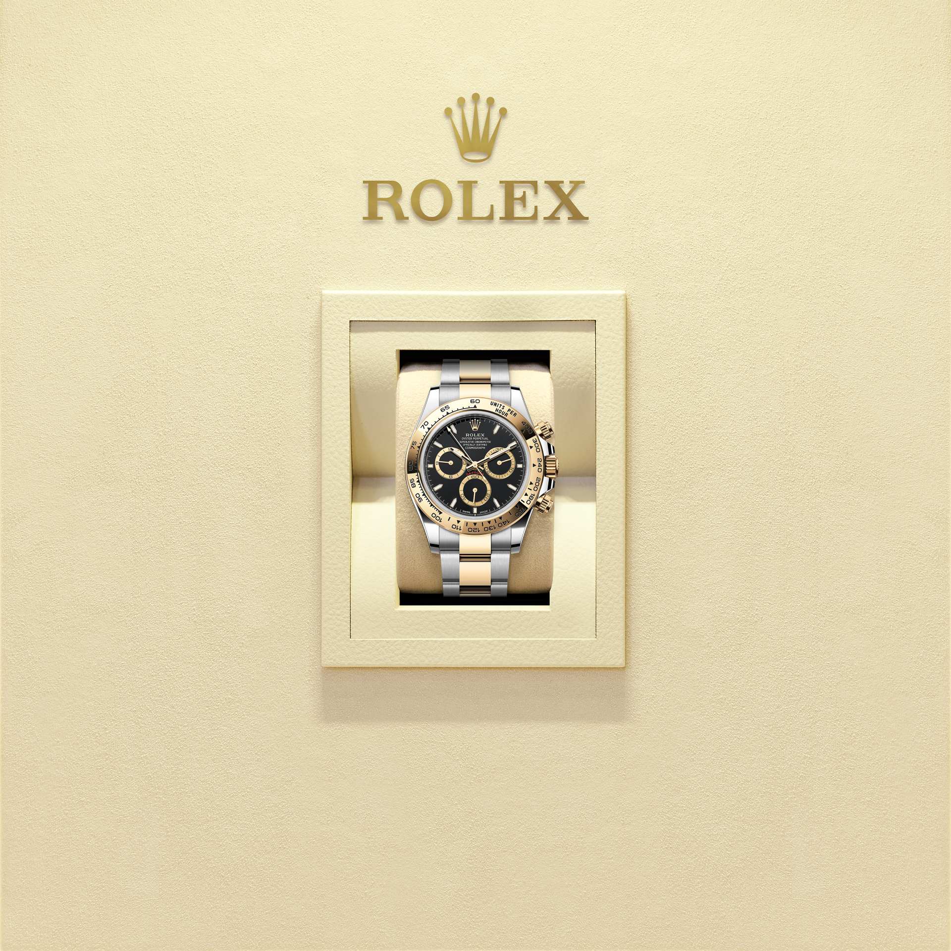 Com escala taquimétrica, três totalizadores e pulsadores, o Cosmograph Daytona foi criado para ser o melhor instrumento de cronometragem dos pilotos de corrida em provas de resistência. A luneta apresenta uma escala taquimétrica que permite ler a velocidade média na distância percorrida em função do tempo cronometrado.