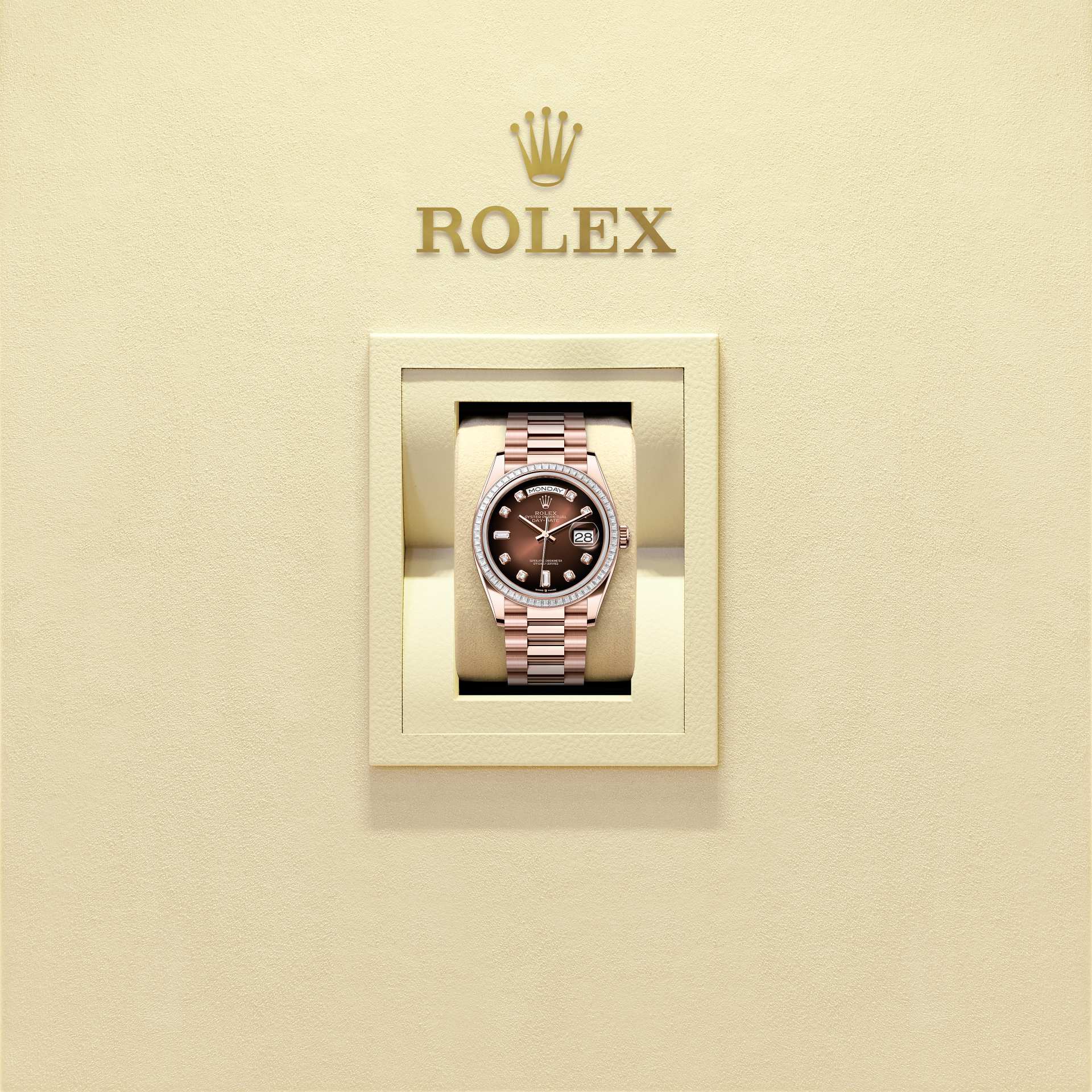 Day-Date 36Oyster, 36 mm, ouro Everose e diamantesReferência 128395TBR