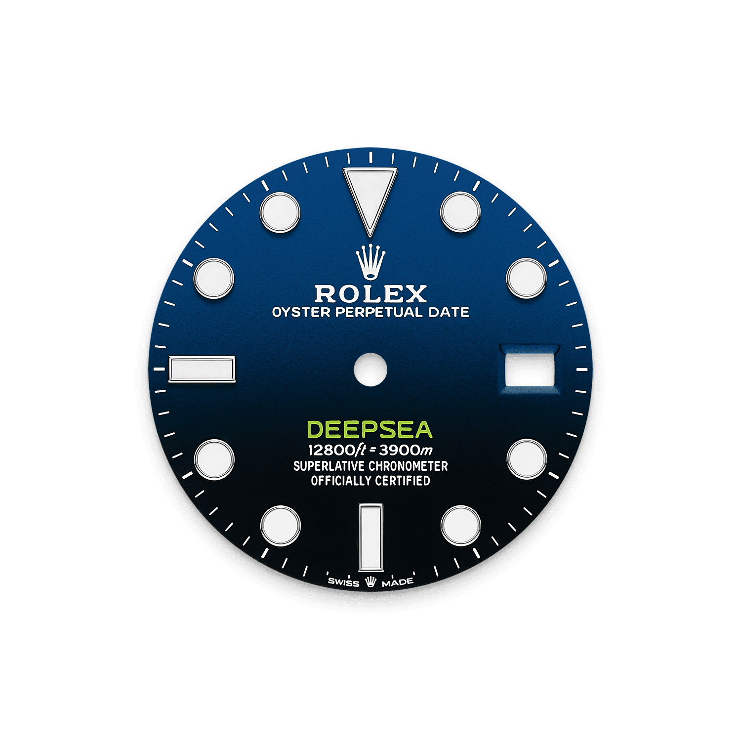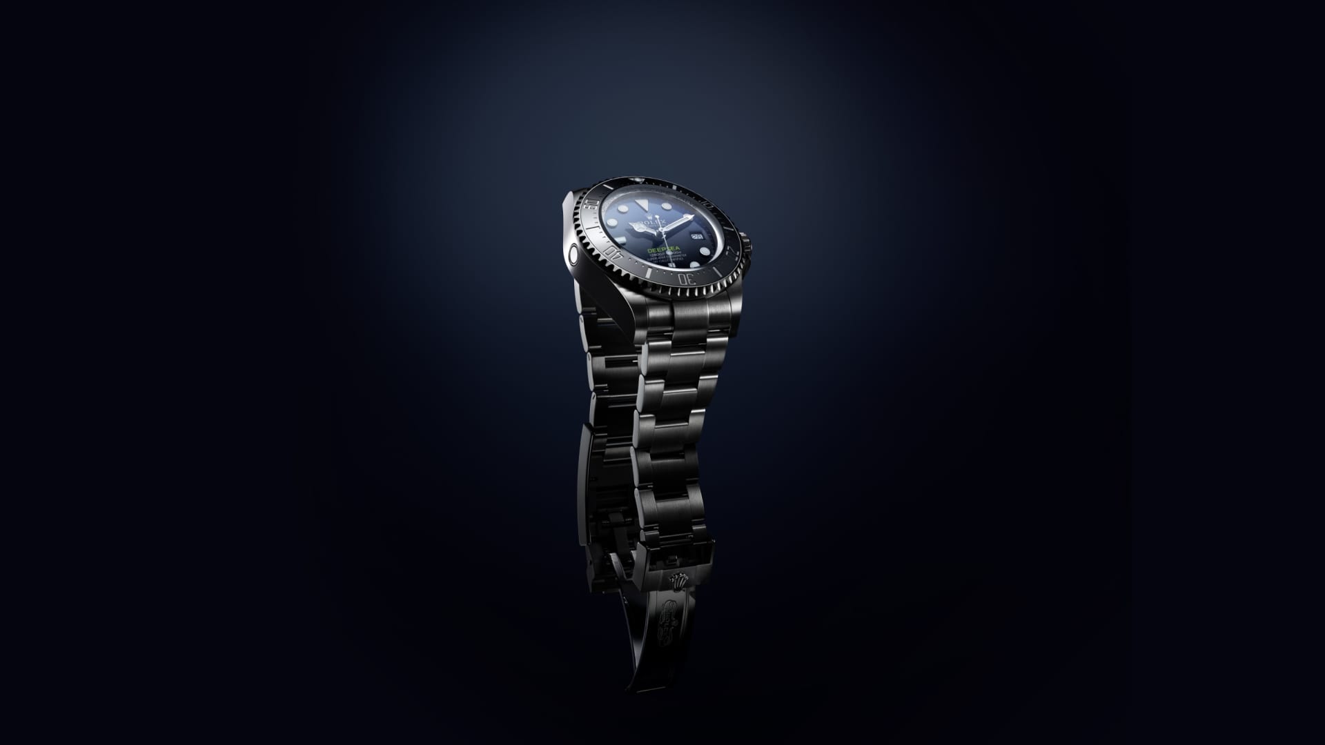 Seu mostrador bicolor, que vai gradualmente do azul brilhante ao preto imensurável, comemora a jornada de um homem ao ponto mais profundo do planeta: o fundo da Fossa das Marianas.