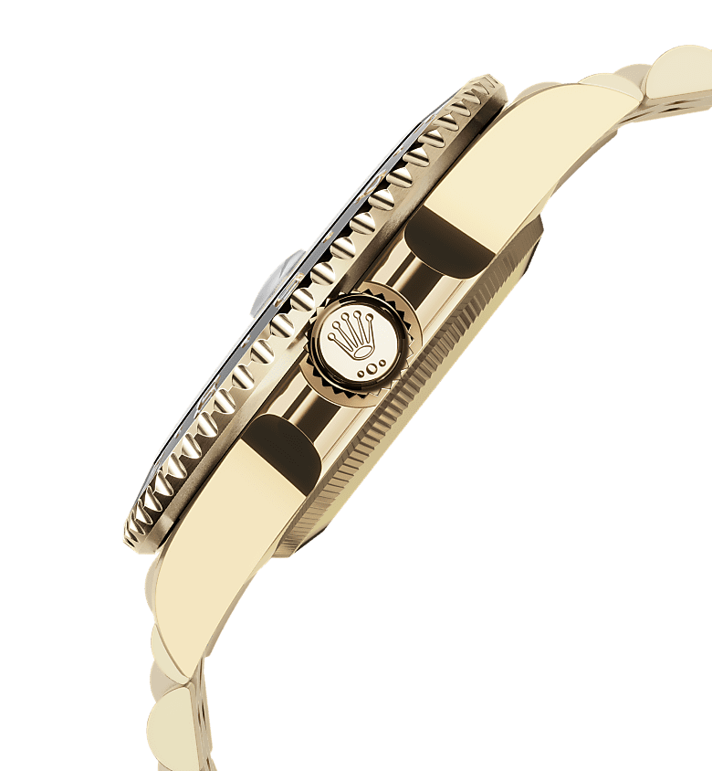 Oyster Perpetual GMT-Master II em ouro amarelo 18 quilates com mostrador preto e pulseira Jubilee.