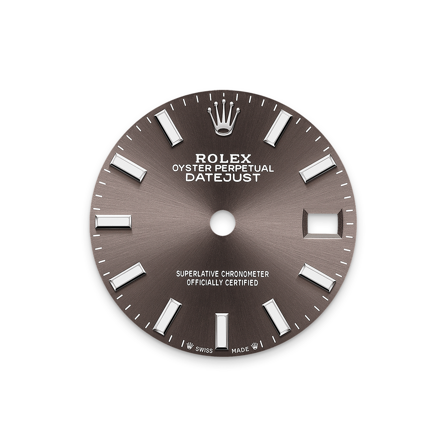 O acabamento Sun cria delicados reflexos de luz em diversos mostradores da coleção Oyster Perpetual. É obtido por meio de técnicas de escovação magistrais que criam ranhuras que vão do centro até a borda do mostrador.