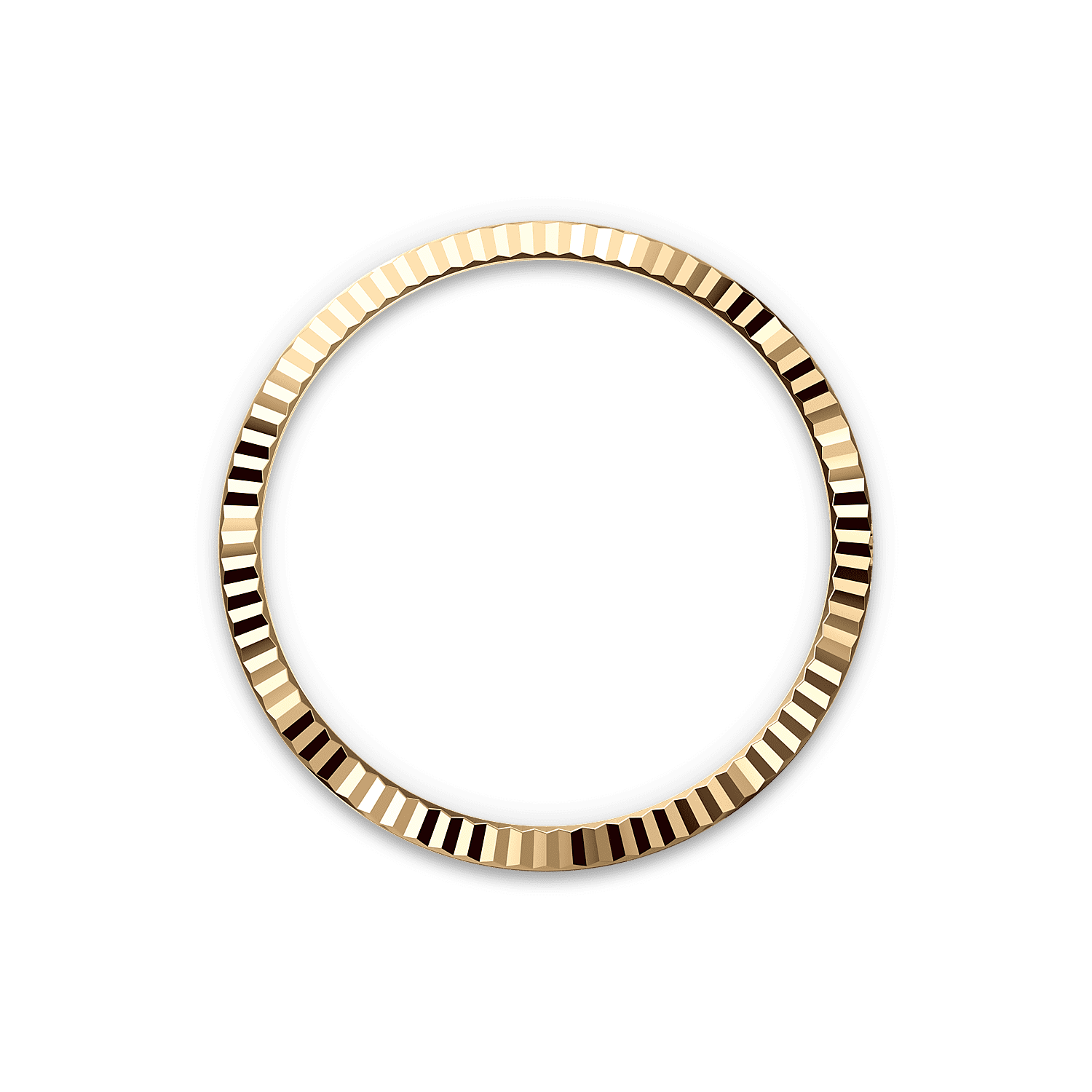 То есть обладало той же функцией, что и рифление на задней крышке, которая прикручивалась к корпусу при помощи специального инструмента Rolex, обеспечивая водонепроницаемость часов. Со временем рифление на безеле превратилось в декоративный элемент, который сегодня является отличительной чертой часов Rolex. Рифленый безель является характерной особенностью дизайна часовой марки. Данная модель Day-Date 36 оснащена рифленым безелем из золота.