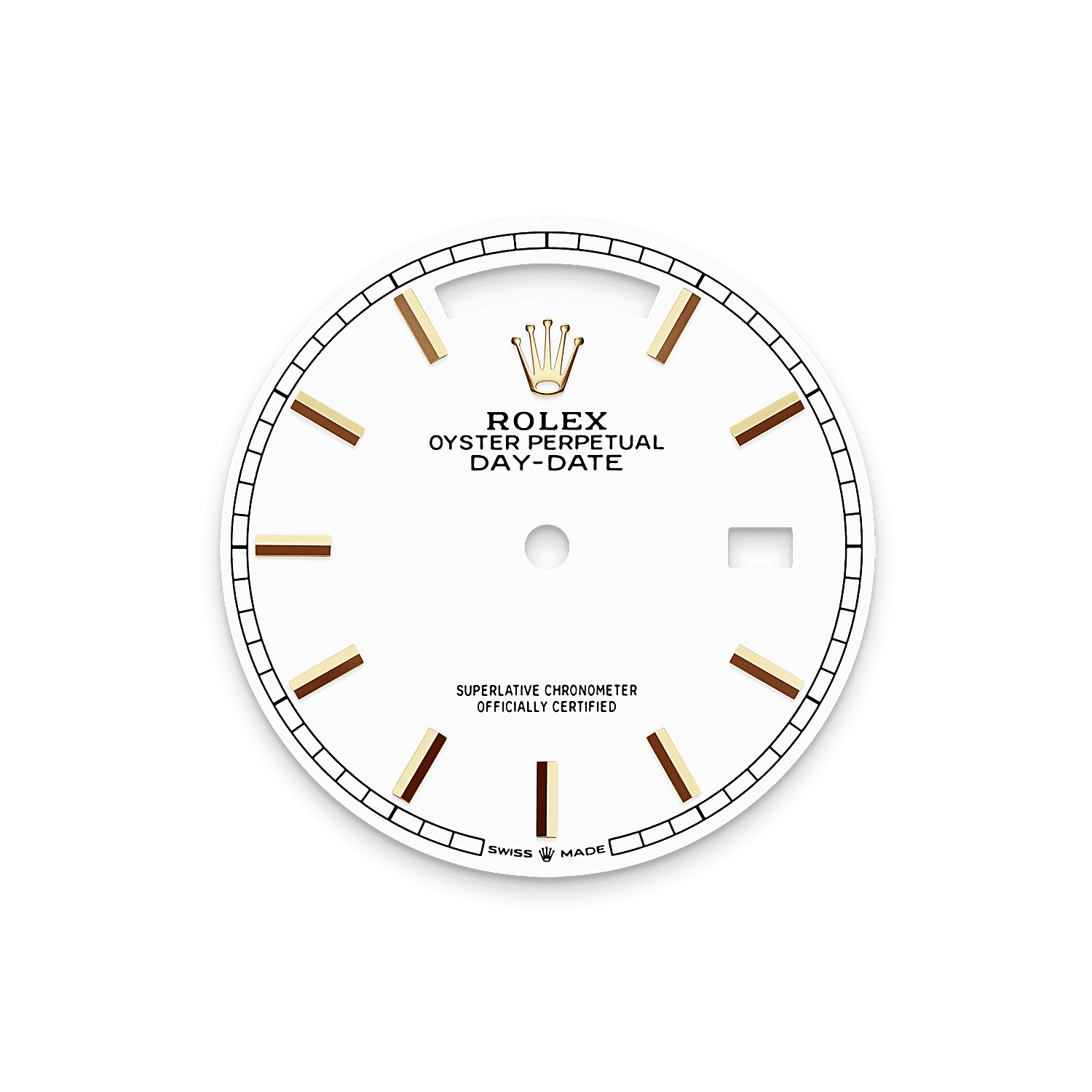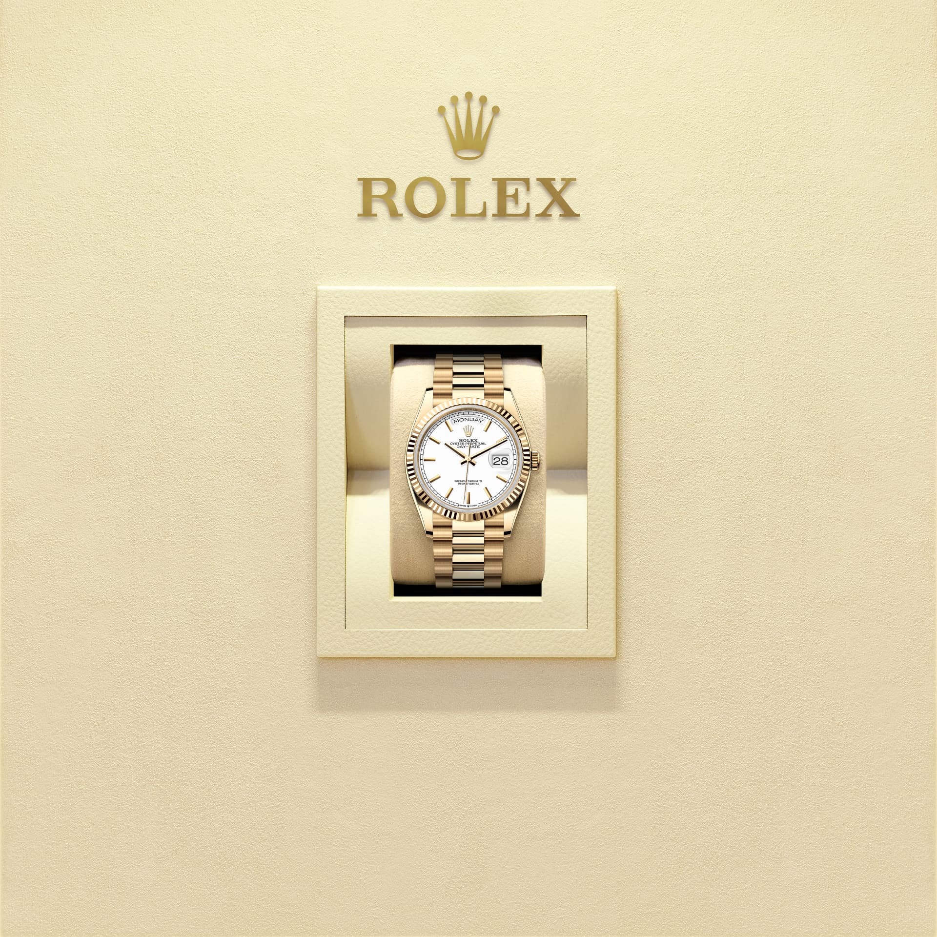 Часы Oyster Perpetual Day-Date 36, 18-каратное желтое золото; циферблат: белый; безель: рифленый; браслет: President.