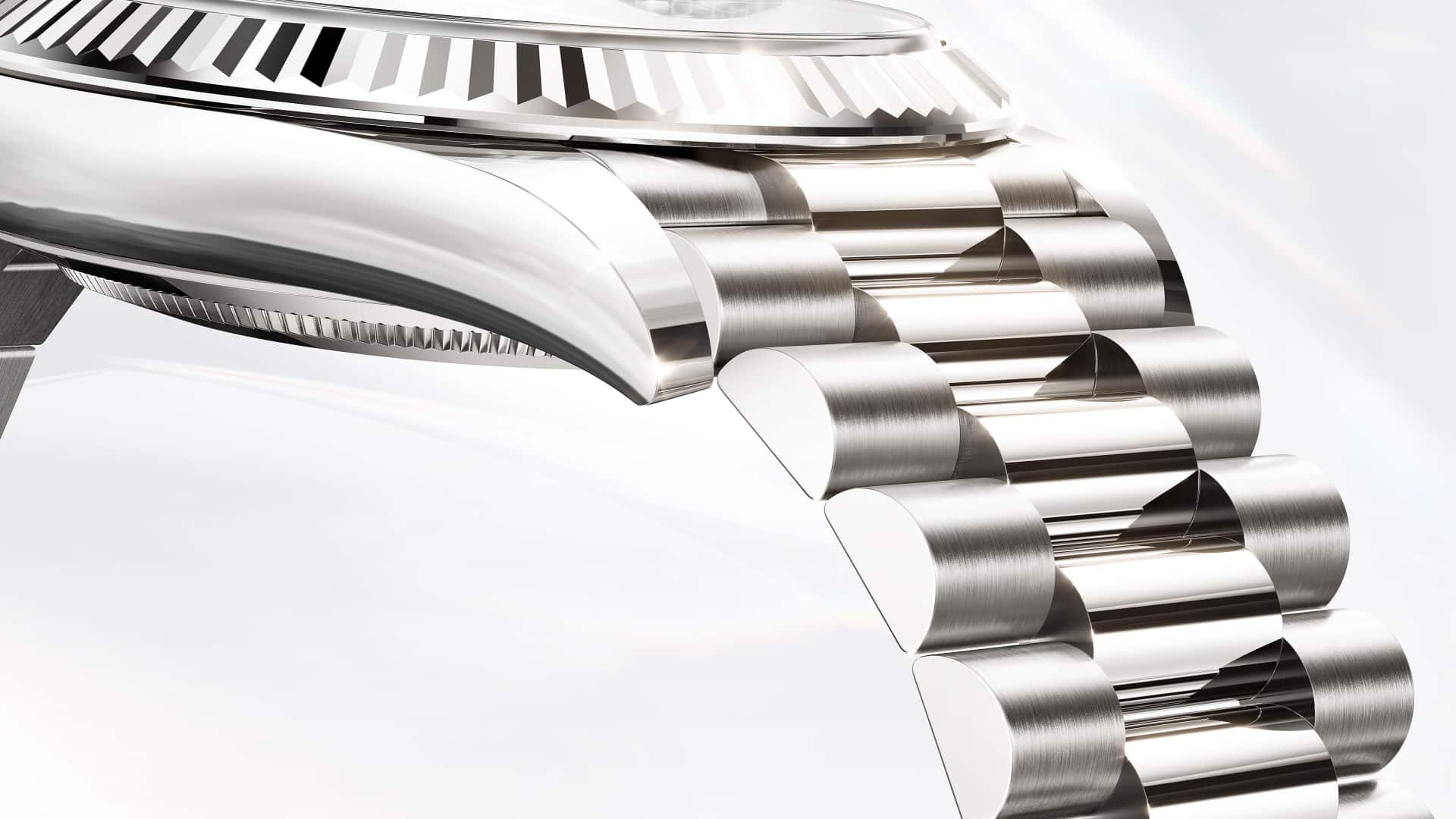 Как и в случае любых других составляющих часов, визуальный контроль, осуществляемый мастером, гарантирует их безупречный внешний вид. Браслет President с полукруглыми трехрядными звеньями был создан в 1956 году к выходу престижной модели Oyster Perpetual Day‑Date. Этот изысканный и удобный браслет изготавливается только из тщательно отобранных образцов драгоценных металлов.
