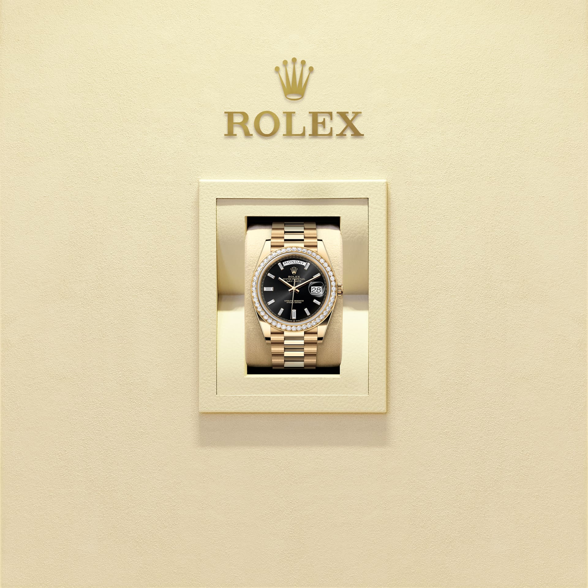 Часы Oyster Perpetual Day-Date 40, 18-каратное желтое золото; циферблат: ослепительно черный, бриллианты; безель: бриллианты; браслет: President.