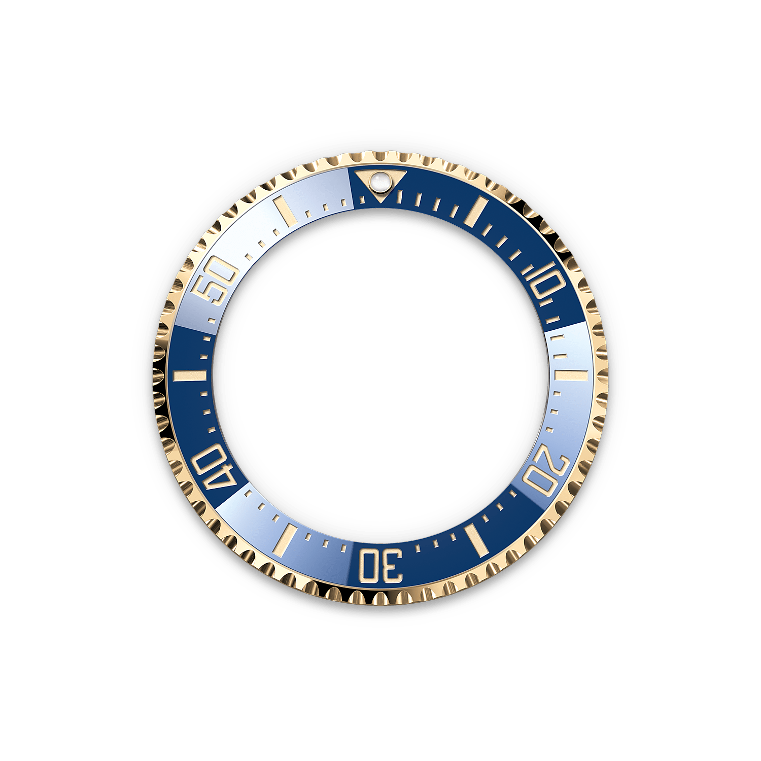 Вращающийся в одном направлении безель с градуированной 60‑минутной шкалой модели Rolex Deepsea позволяет точно и в условиях полной безопасности считывать время погружения и декомпрессии. Нулевая отметка, обозначенная треугольником, хорошо различается в темноте благодаря интегрированной люминесцентной капсуле c синим свечением долгого действия. Деления на безеле покрыты тончайшим слоем желтого золота, нанесенным с помощью технологии PVD (Physical Vapor Deposition — конденсация паров металла).