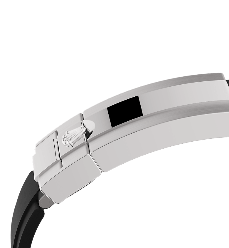 Oyster Perpetual Cosmograph Daytona รุ่นวัสดุทองคำขาว 18 กะรัต มาพร้อมหน้าปัด สตีลและสีดำสว่าง และสายนาฬิกา Oysterflex พร้อมด้วยขอบตัวเรือน Cerachrom สีดำที่มาพร้อมสเกลวัดความเร็ว