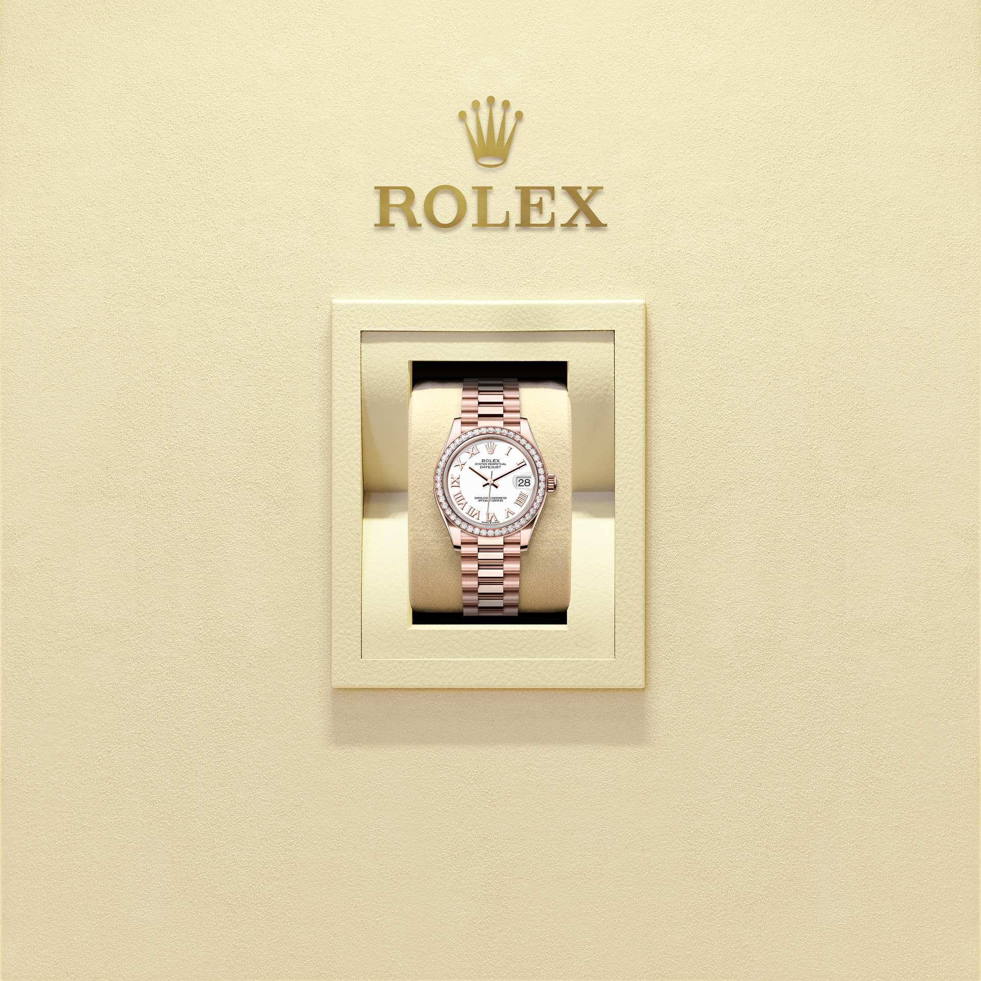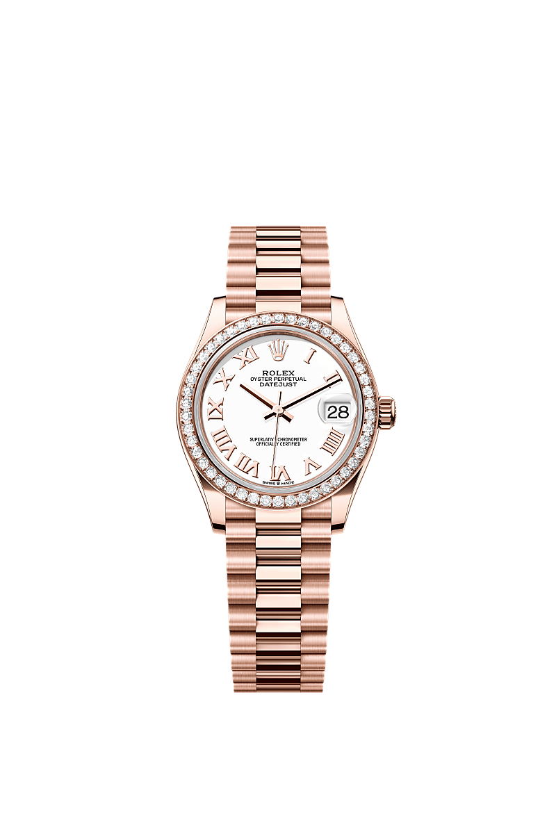 Oyster Perpetual Datejust 31 ทำจากEverose gold 18 กะรัต โดดเด่นด้วยหน้าปัดสีขาว และสาย President