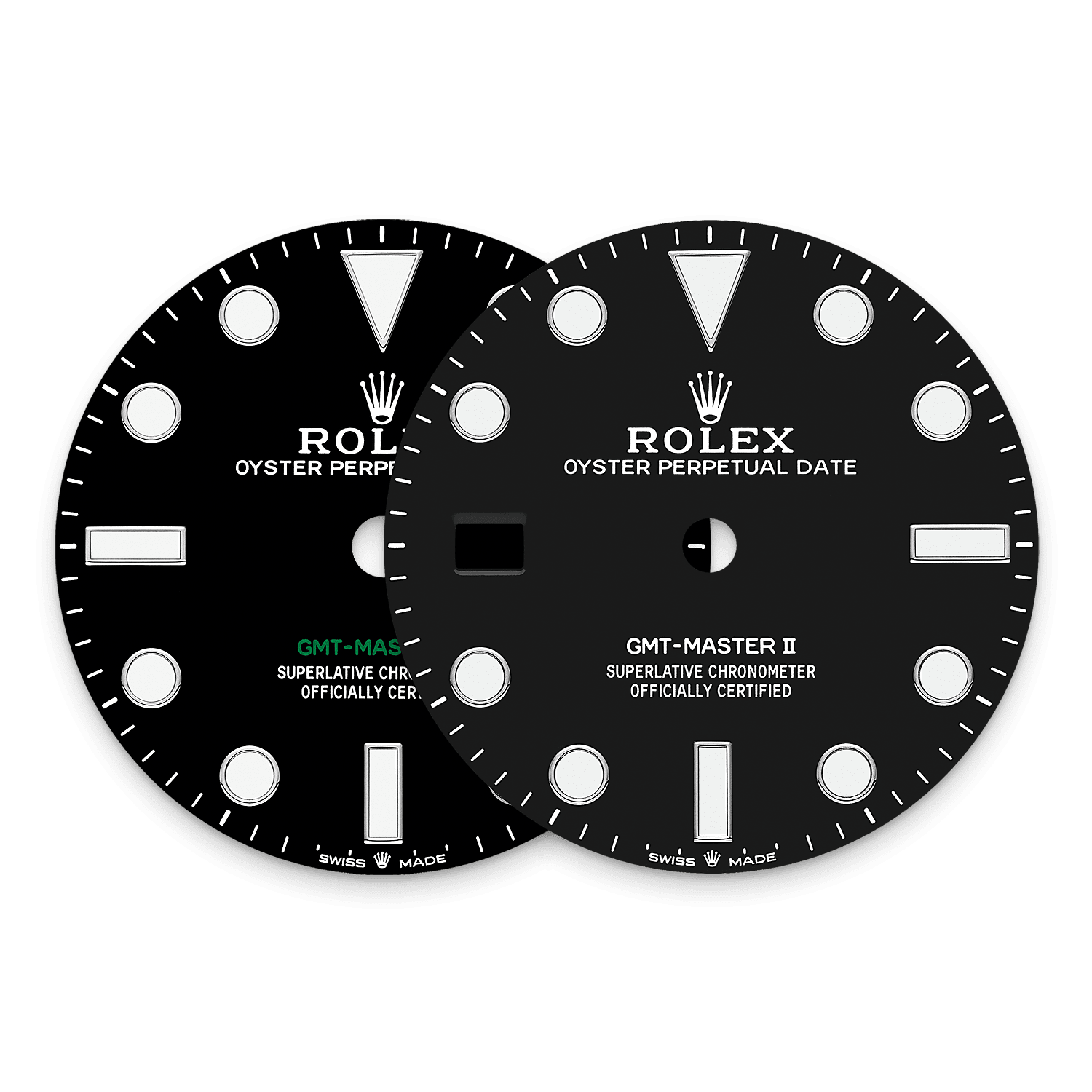 นาฬิการุ่นนี้มาพร้อมกับหน้าปัดสีดำและขอบหน้าปัด Cerachrom สีน้ำเงินและสีดำทำจากเซรามิก นอกจากเข็มแสดงชั่วโมง นาที และวินาทีแบบนาฬิกาทั่วไปแล้ว GMT-Master II ยังมีเข็มนาฬิกาปลายลูกศรที่หมุนเป็นวงกลมรอบหน้าปัดทุก 24 ชั่วโมง พร้อมขอบหน้าปัดแสดงเวลา 24 ชั่วโมงที่หมุนได้สองทิศทาง