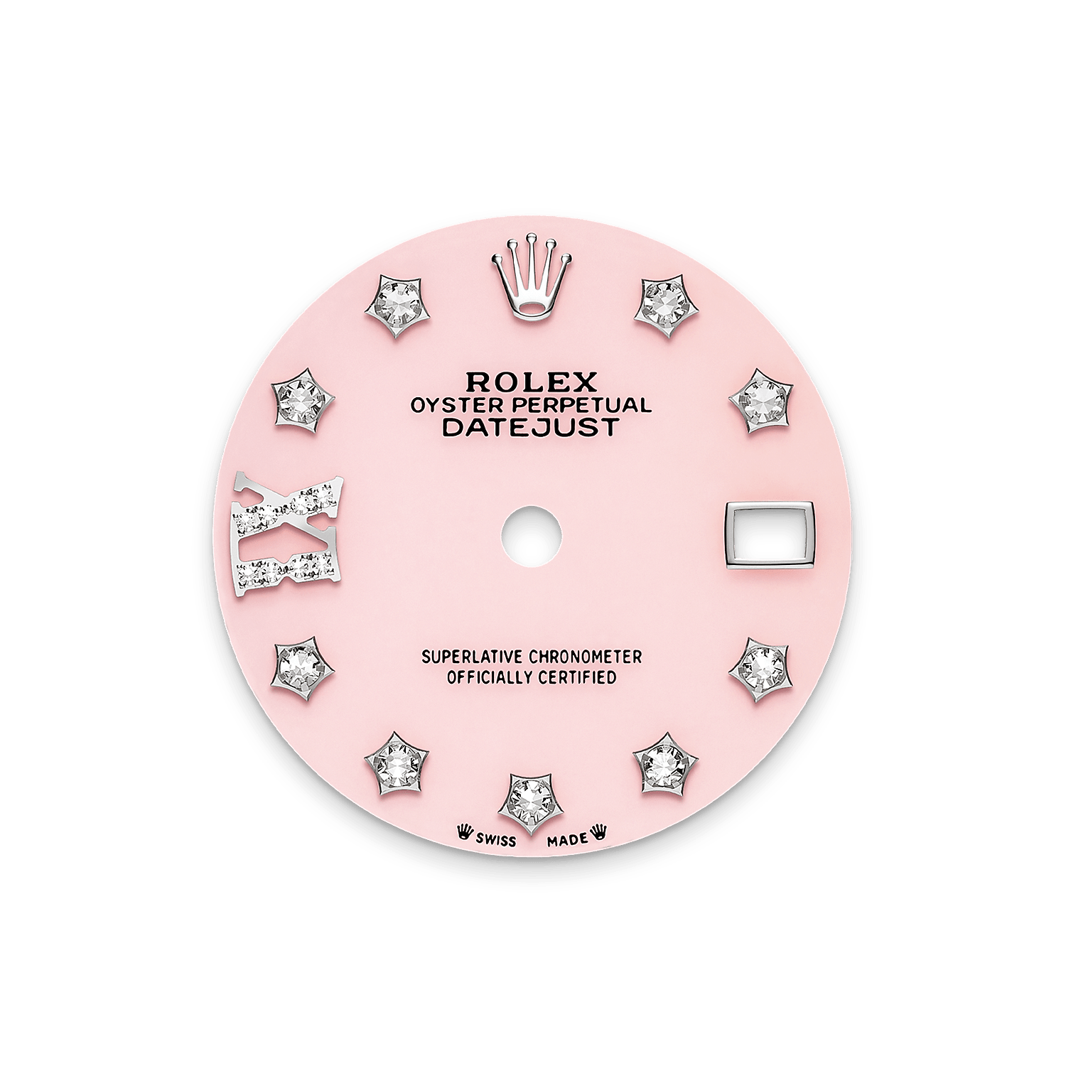 ลักษณะเด่นของหน้าปัดรุ่นนี้เพชรประดับทองคำ 18 กะรัตและตัวเลขโรมัน IX จากทองคำ 18 กะรัต ประดับด้วยเพชร 8 เม็ด Rolex ได้พัฒนาความเชี่ยวชาญเฉพาะตัวในการรังสรรค์หน้าปัดประดับอัญมณีอย่างโอปอลสีชมพู