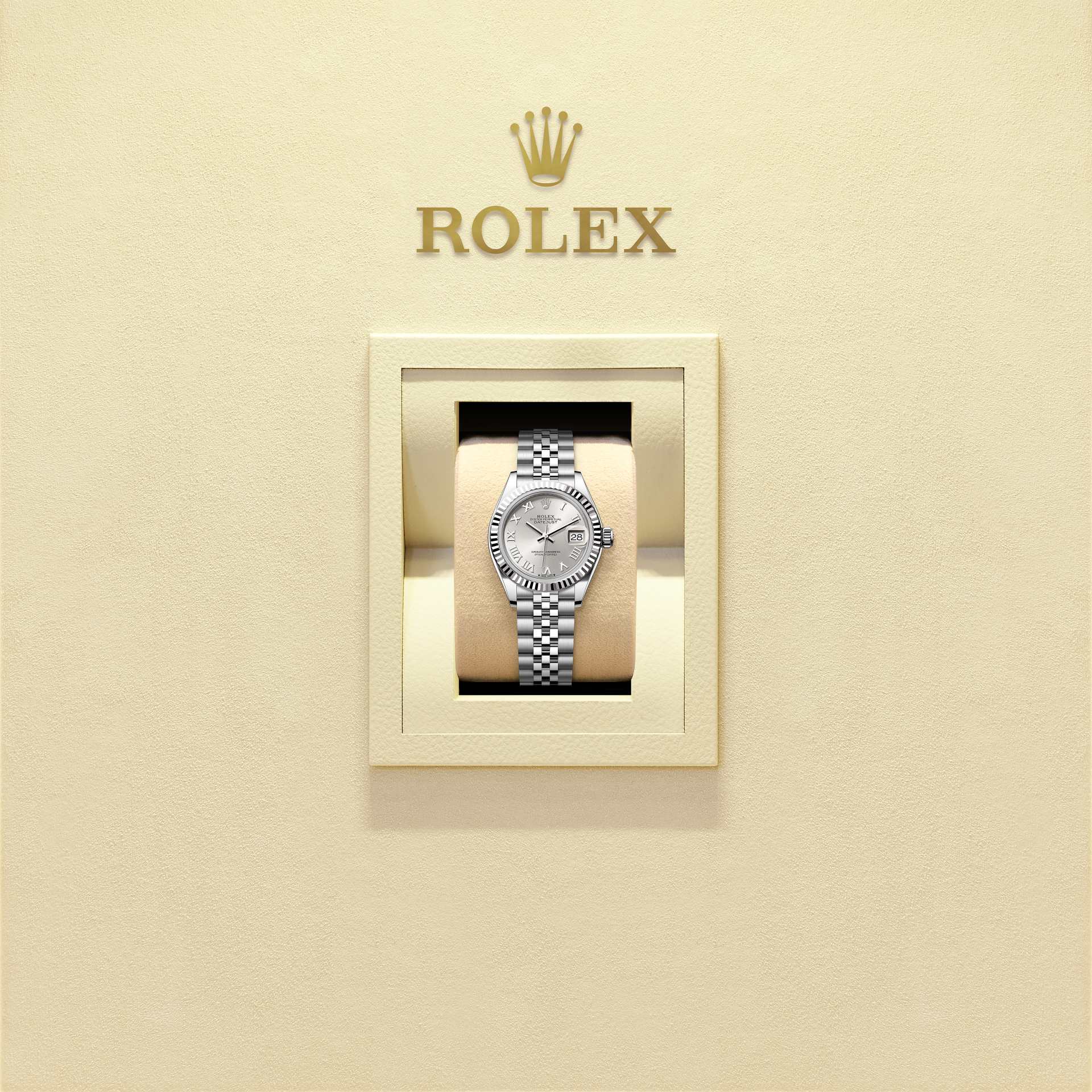 และในชิ้นส่วนทั้งหมดของนาฬิกานั้น การควบคุมความงดงามผ่านการตรวจสอบด้วยสายตามนุษย์คือการรับประกันถึงความงามอันสมบูรณ์แบบ สายนาฬิกา Jubilee เป็นสายนาฬิกาโลหะที่ประกอบด้วยข้อต่อห้าชิ้นที่มีความยืดหยุ่นและสวมใส่สบาย ถูกออกแบบและผลิตขึ้นเป็นพิเศษสำหรับการเปิดตัว Oyster Perpetual Datejust ในปี 1945