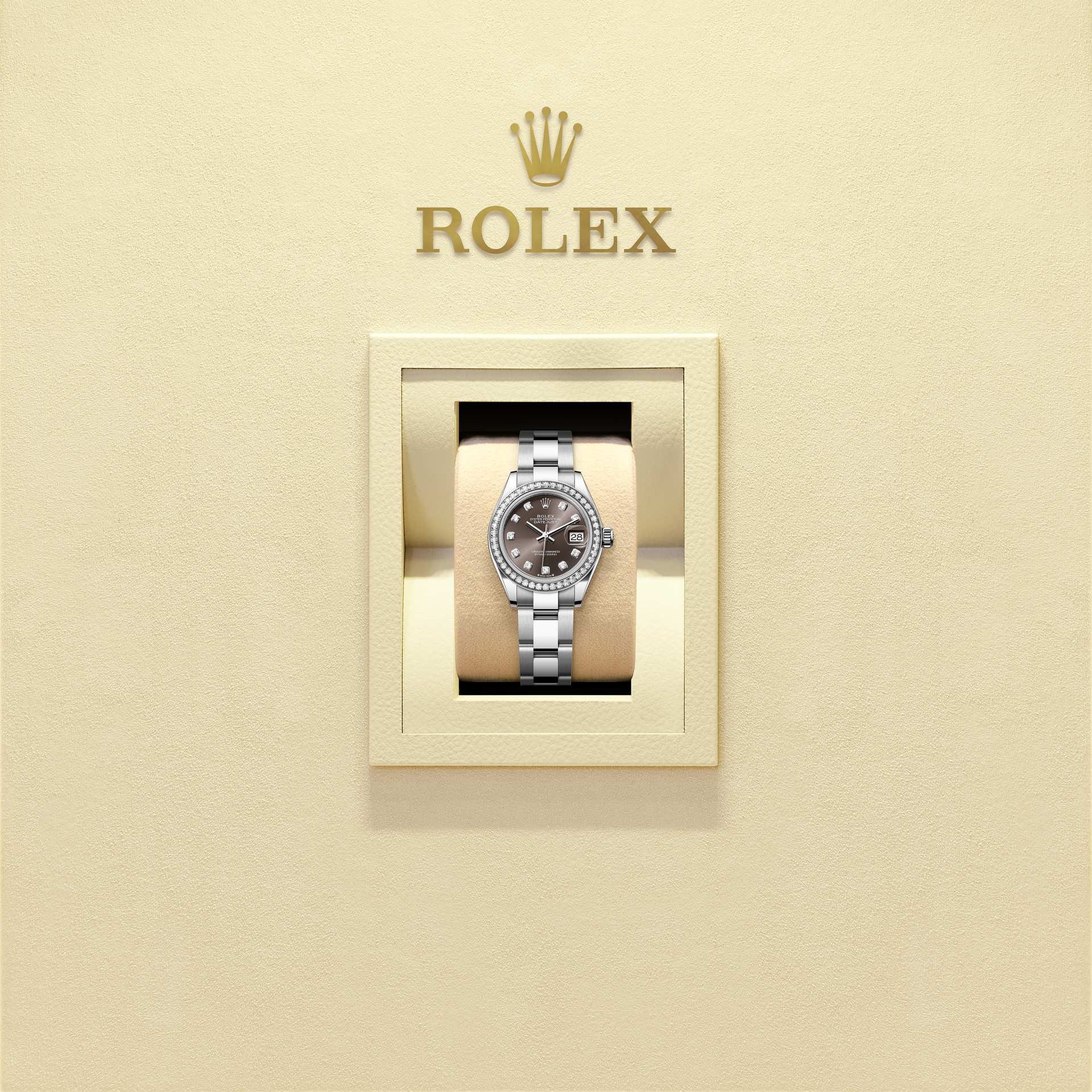 ลักษณะเด่นของหน้าปัดรุ่นนี้คือความงดงามของเพชรประดับทองคำ 18 กะรัต การตกแต่งผิวซันเรย์ยังรังสรรค์แสงสะท้อนอันละเอียดอ่อนบนหลากหลายหน้าปัดในคอลเลกชัน Oyster Perpetual โดยใช้เทคนิคการแปรงพิเศษเฉพาะระดับมืออาชีพในการสร้างร่องที่ปัดออกจากกลางหน้าปัด