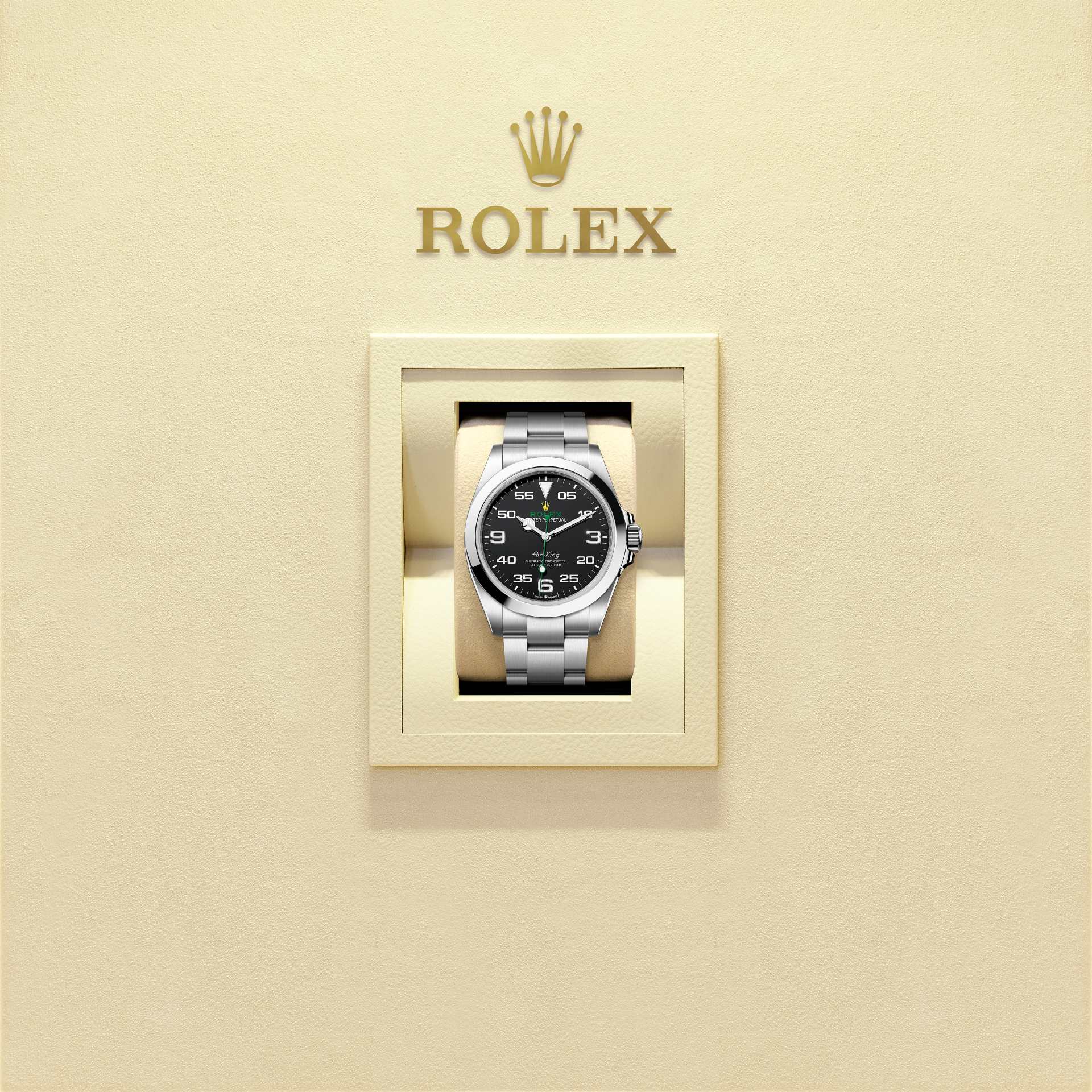 40 mm Oystersteel çelik kasası, tokalı masif Oyster bileziği ve çarpıcı siyah kadranıyla Air-King, orijinal Rolex Oyster’ın havacılık mirasını devam ettirir.