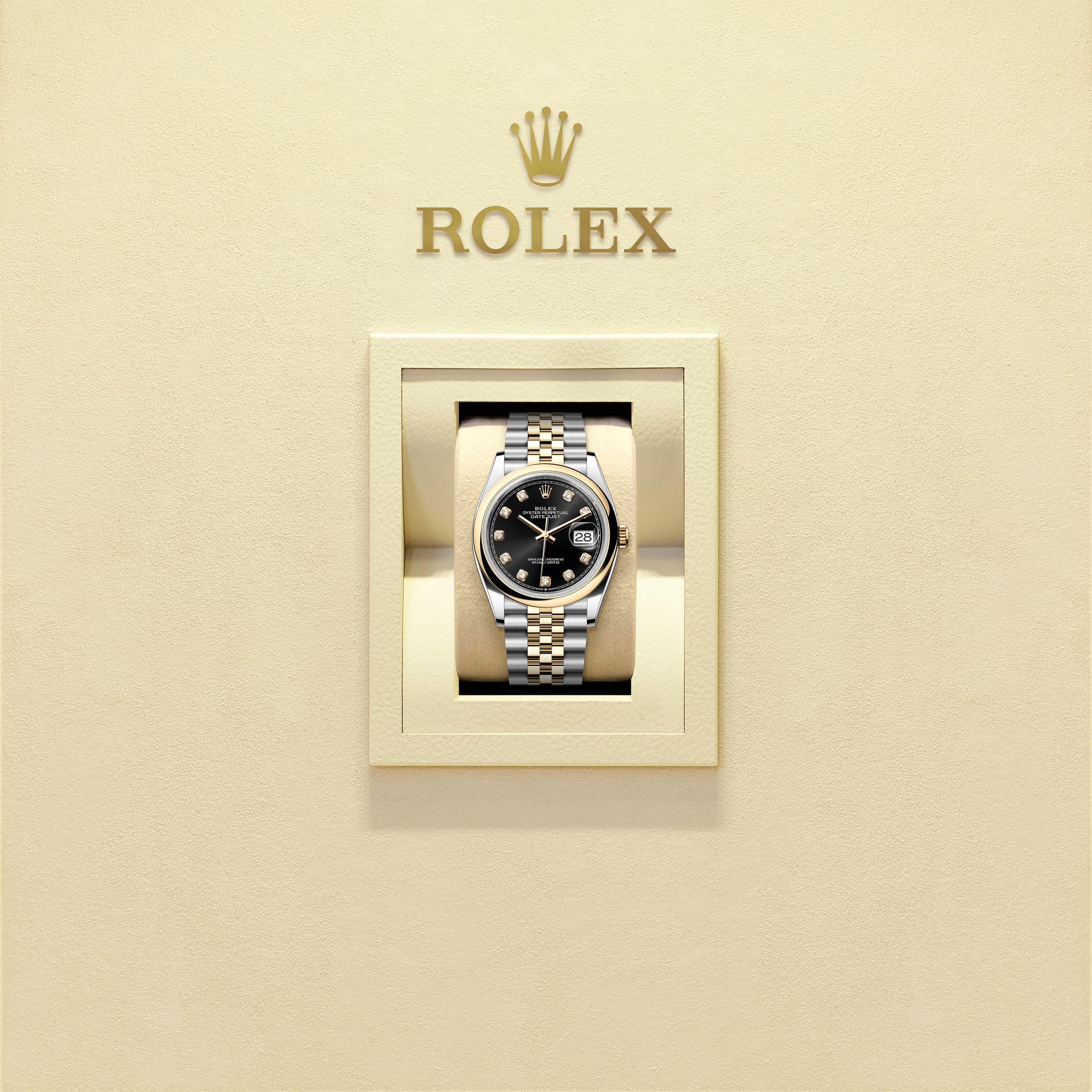 Bu Oystersteel çelik ve sarı altın Oyster Perpetual Datejust 36, pırlantalı parlak siyah kadrana ve Jubilee bileziğe sahiptir.