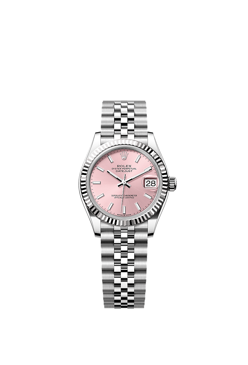 Bu Oystersteel çelik ve beyaz altın Oyster Perpetual Datejust 31, pembe kadrana ve Jubilee bileziğe sahiptir.