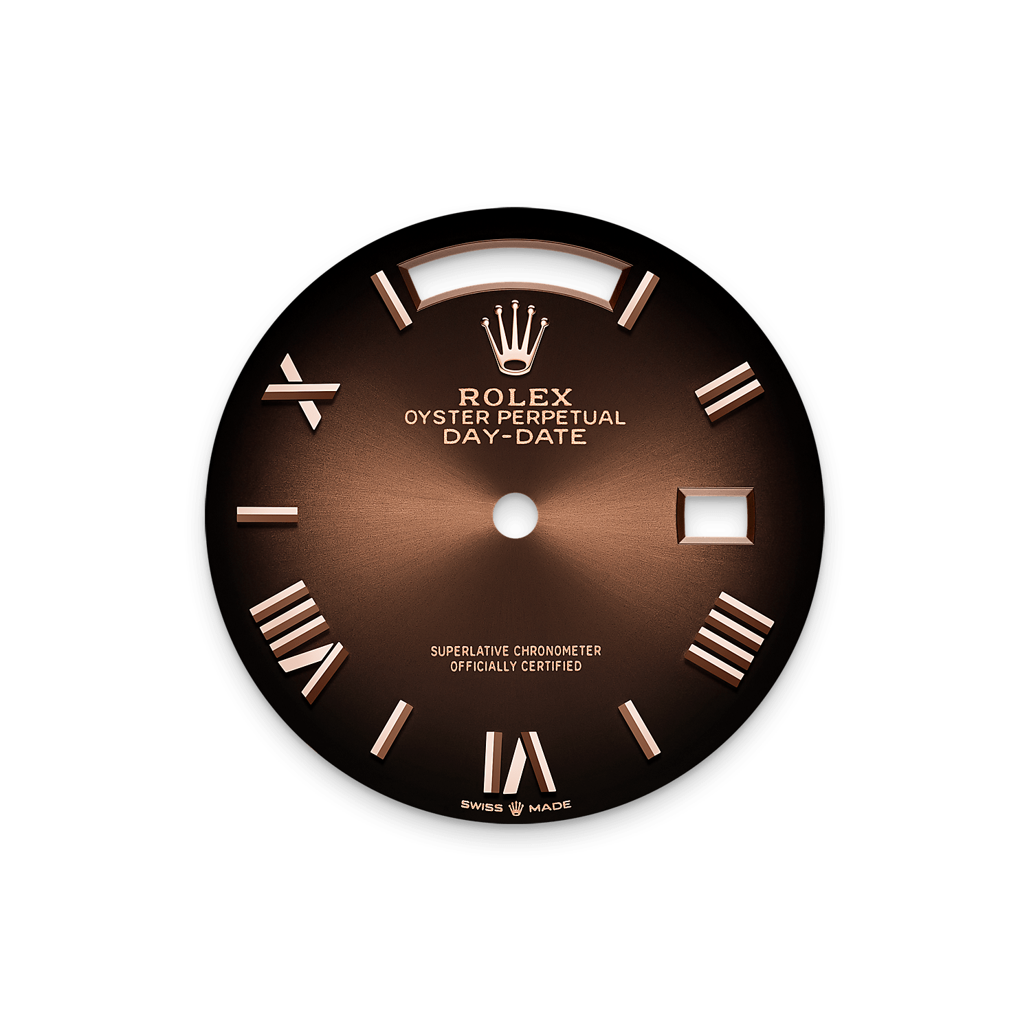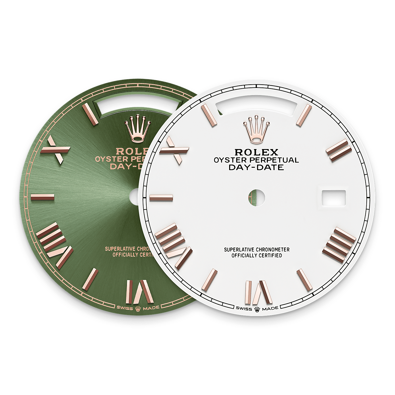 Ayrıca saatin tüm parçalarında olduğu gibi insan gözüyle yapılan estetik kontroller kusursuz güzelliği garanti eder. Yarı dairesel üç parçalı bağlantıyla President bilezik 1956 yılında, Oyster Perpetual Day-Date modelinin lansmanı için geliştirilmiştir. Zarafet ve rahatlıkta en son noktayı temsil eden bilezik, daima özenle seçilmiş değerli metallerden yapılır.