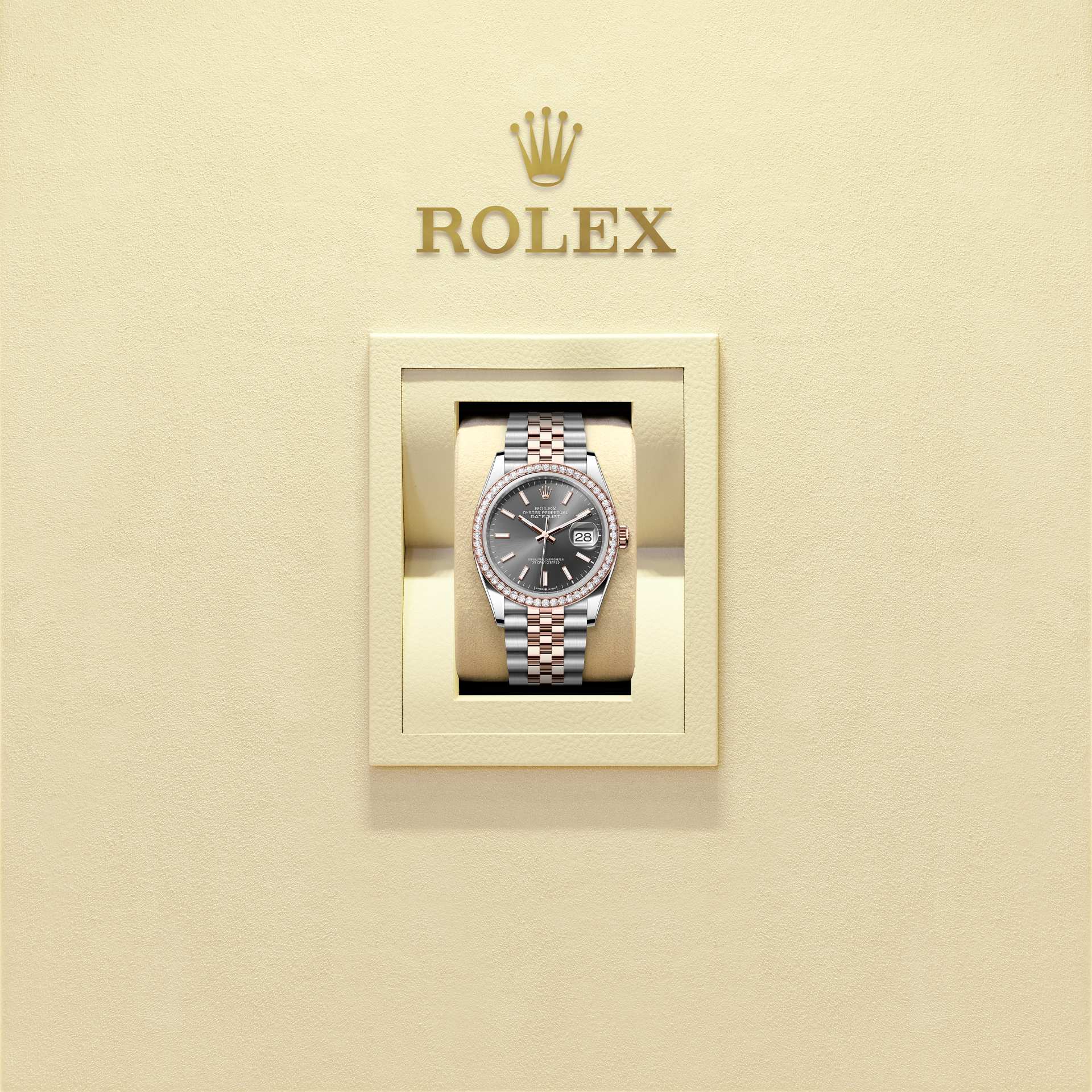 Datejust 36Oyster, 36 mm, thép Oystersteel, vàng Eversose và kim cươngSố tham chiếu 126281RBR