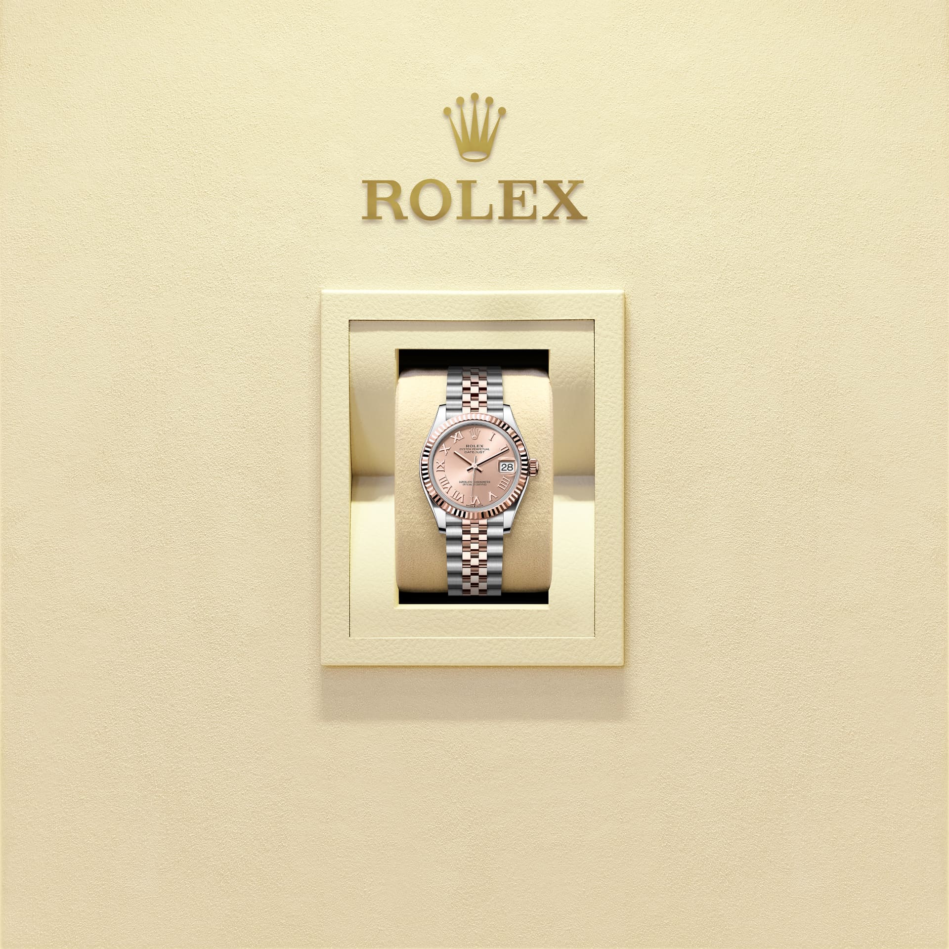 Đồng hồ Oyster Perpetual Datejust 31 bằng thép Oystersteel và vàng Everose đi kèm mặt số màu hoa hồng và dây đeo Jubilee.